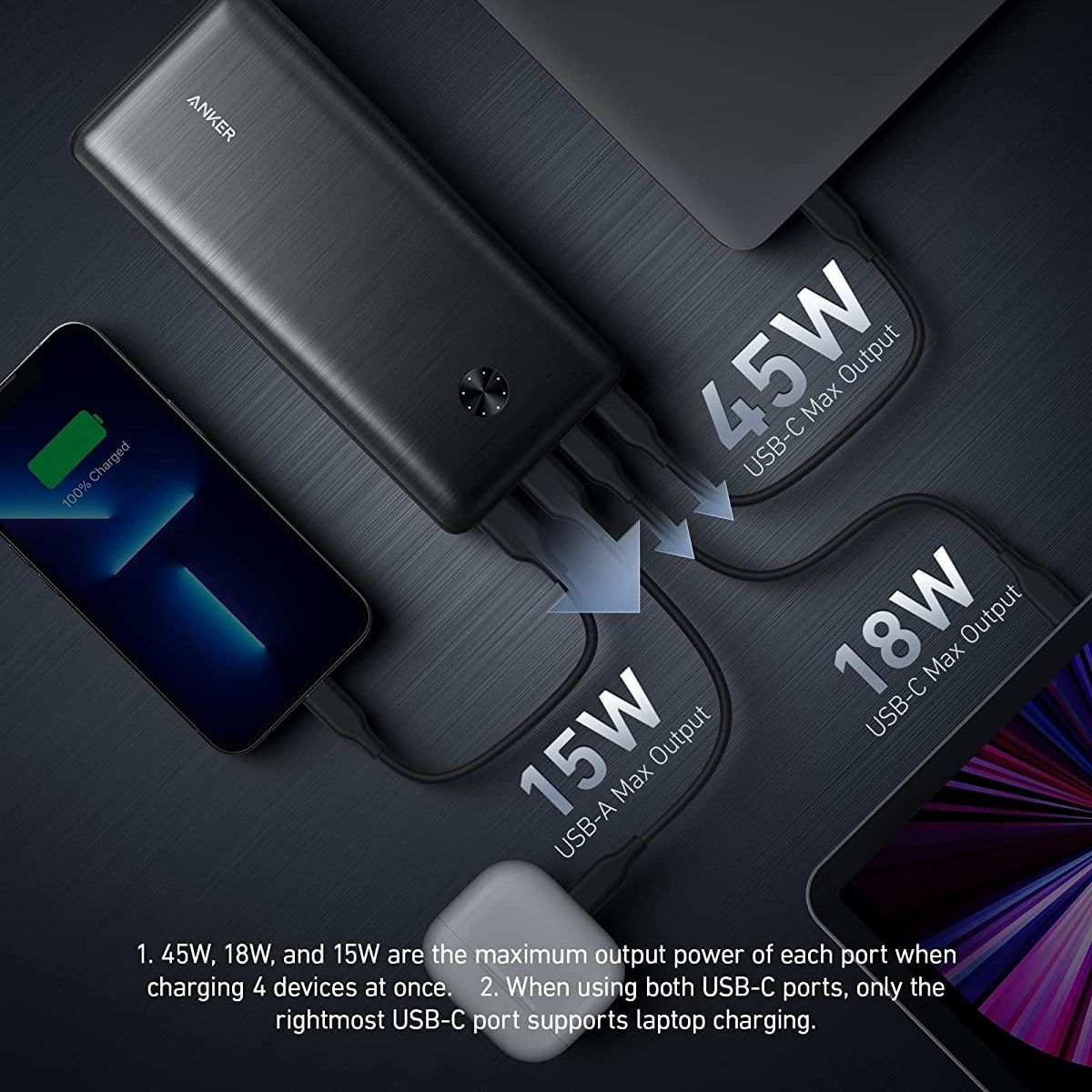 پاوربانک انکر مدل A1289 با ظرفیت ۲۴,۰۰۰ میلیآمپر ساعت، یکی از برترین گزینههای موجود در بازار برای شارژ لپتاپها و سایر دستگاههای الکترونیکی است. ظرفیت 24000 میلی آمپر ساعتی این پاوربانک، امکان شارژ برای لپ تاپهای متوسط تا 50 وات ساعت حدود 2 بار را فراهم میکند. علاوه بر این، توان خروجی 140 وات پاور بانک انکر این محصول را به بهترین پاوربانک برای لپ تاپ تبدیل کرده است. این پاوربانک با پشتیبانی از فناوری PD به راحتی میتواند لپتاپهای پرمصرفی مانند مکبوک پرو ۱۶ اینچ، Dell XPS، یا Surface Laptop را شارژ کند.