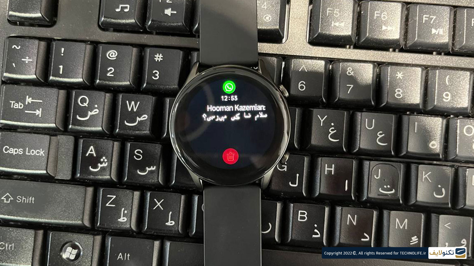 ویژگی دیگری که باید به آن اشاره کنیم، پشتیبانی از زبان فارسی در نشان دادن اعلانهای مختلف است. اگر در پیامرسانهای مختلف پیام فارسی دریافت کنید میتوانید در این ساعت پیامها را مشاهده کنید. البته نمایش فارسی کمی با مشکل همراه است، اما قطعا کار شما راه خواهد افتاد.
