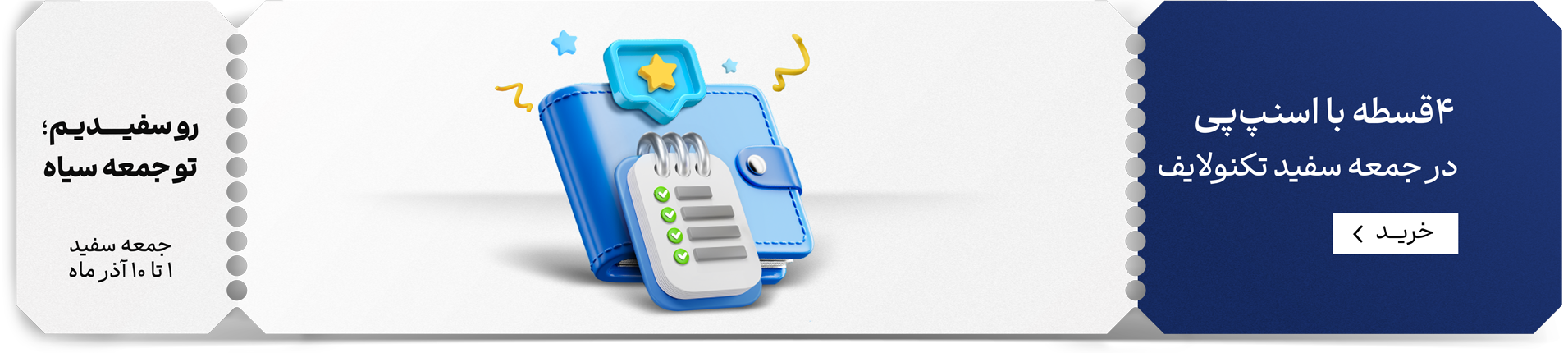 خرید از تکنولایف، قرار است همیشه برای شما رضایتبخش باشد. بههمینمنظور تکنولایف در طی سال با برگزاری جشنوارههای مختلف مانند بلک فرایدی ، تخفیفهای ویژهای را برای مشتریان در نظر گرفته است.