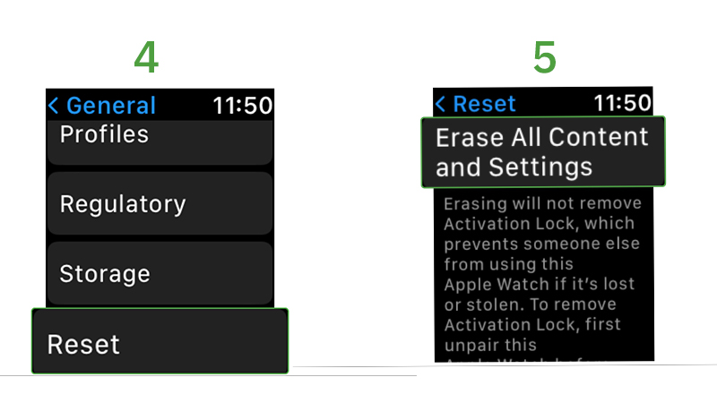 اگر قصد دارید ساعت خود را به شخص دیگری بدهید باید تمام اطلاعات، رمزها و حساب Apple ID را پاک کنید تا خریدار جدید بتواند آن را به حساب خودش متصل کند و قفل فعالسازی (Activation Lock) باقی نماند. علاوه بر آن اگر یک اپل واچ را به صورت دست دوم خریداری کردهاید، توصیه میشود قبل از استفاده یکبار اطلاعات آن را به صورت کامل پاک کنید.
