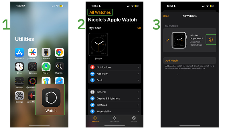 اگر میخواهید اپل واچ خود را به یک آیفون دیگر متصل کنید، ابتدا باید آن را از آیفون قبلی جدا و اطلاعاتش را حذف کنید تا بدون مشکل به گوشی جدید متصل شود. برای نمونه اگر گوشی خود را ارتقا دادهاید و آیفون جدیدی خریداری کردهاید لازم است که ساعت و موبایل جدید را با هم سینک کنید.