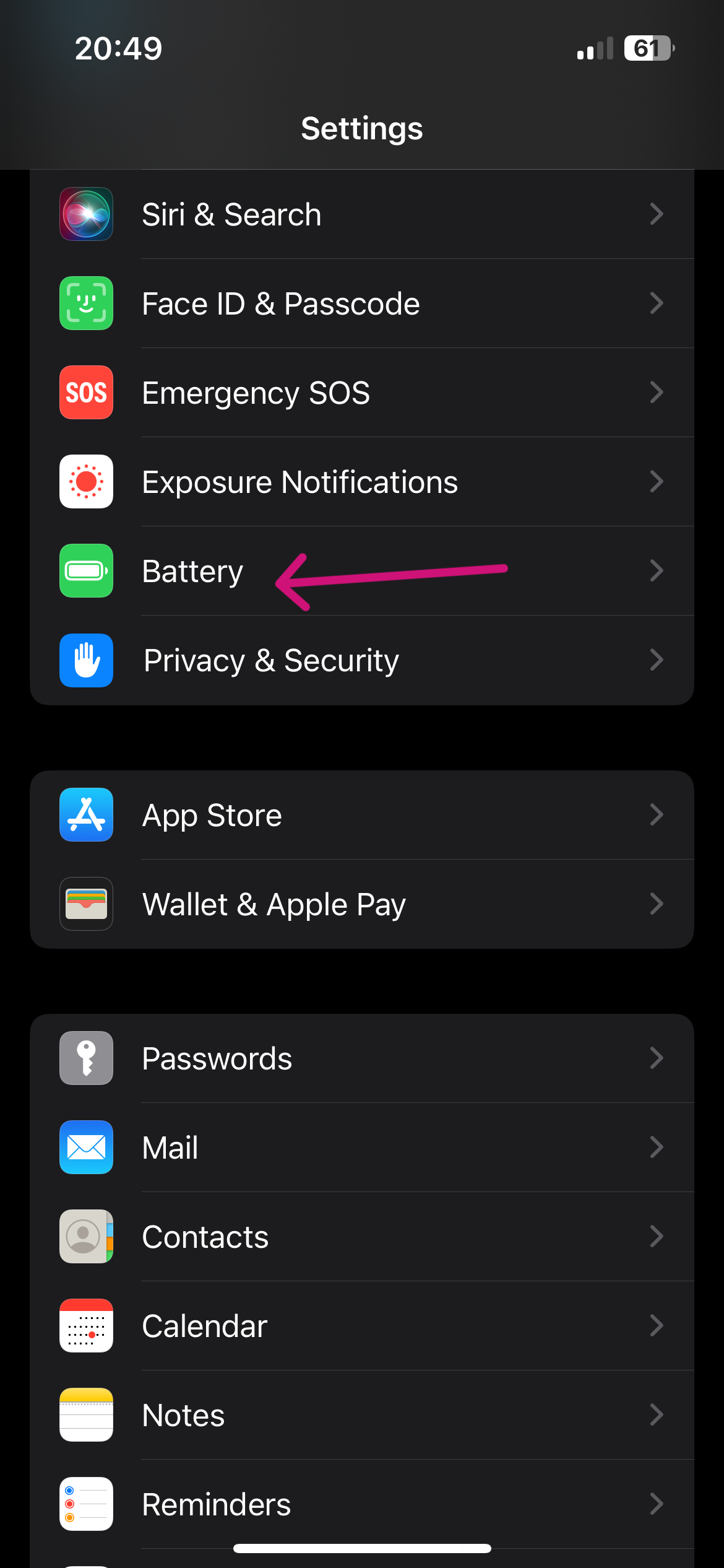 با توجه به اینکه تا به اینجای مقاله با مفهوم سلامت باتری آیفون آشنا شدیم، این نیاز دیده میشود تا هرچه زودتر به جواب سوال سلامت باتری ایفون کجاست، دست پیدا کنیم. درواقع سلامت باتری ایفون در تنظیمات قرار دارد. برای پیدا کردن بخش هلث باتری اپل ابتدا باید به تنظیمات یا همان Settings بروید سپس صفحه را به سمت پایین اسکرول کنید تا گزینه Battery نمایش داده شود. روی Battery ضربه بزنید. در صفحه جدید باید نسبت به انتخاب گزینه Battery Health and Charging اقدام کنید. در نهایت برای صفحه آخر تنها نیاز است تا روی بخش Maximum Capacity ضربه بزنید و درصد نمایش داده شده را به عنوان جواب سوال باتری هلث آیفون چیست، بپذیرید.
