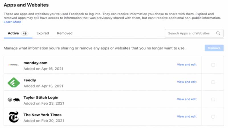 برای اعمال این مرحله به برنامههای خود بروید و بررسی کنید چه کسی به حساب شما دسترسی دارد. اگر برنامههایی وجود دارد که آنها را نمیشناسید یا دیگر از آنها استفاده نمیکنید، دسترسی آنها را لغو کنید. آنها را در بخش Settings > Apps and Websites پیدا خواهید کرد.