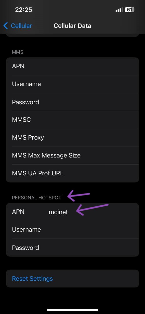 به جز personal hotspot بقیه موارد رو همapn رو پر کردم و درست شد و اینترنت هم وصل شد خیلی ممنون ازتون
