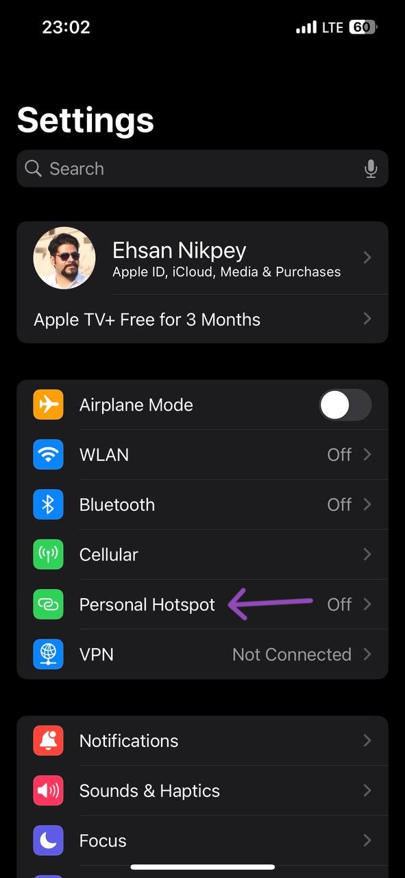 برای فعال سازی هات اسپات آیفون ۱۳مراحل زیر را پشت سر بگذارید.