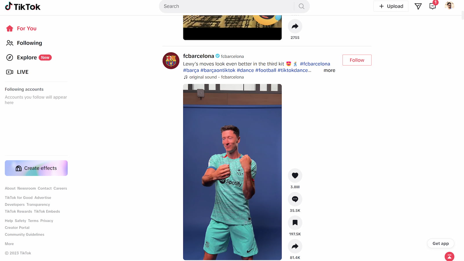 مانند اینستاگرام، واتساپ، فیسبوک و بسیاری از برنامههای مشهور دیگر شما میتوانید از نسخه تحت وب استفاده کنید و برنامه را به روی گوشی خود نصب نکنید. برای این کار کافیست وارد سایت تیک تاک شوید و سپس یک اکانت ایجاد کنید و یا به اکانت خود وارد شوید. در ادامه همانطور که در تصاویر مشاهده میکنید بخشهای مختلف مانند برنامه در دسترس شما خواهد بود.