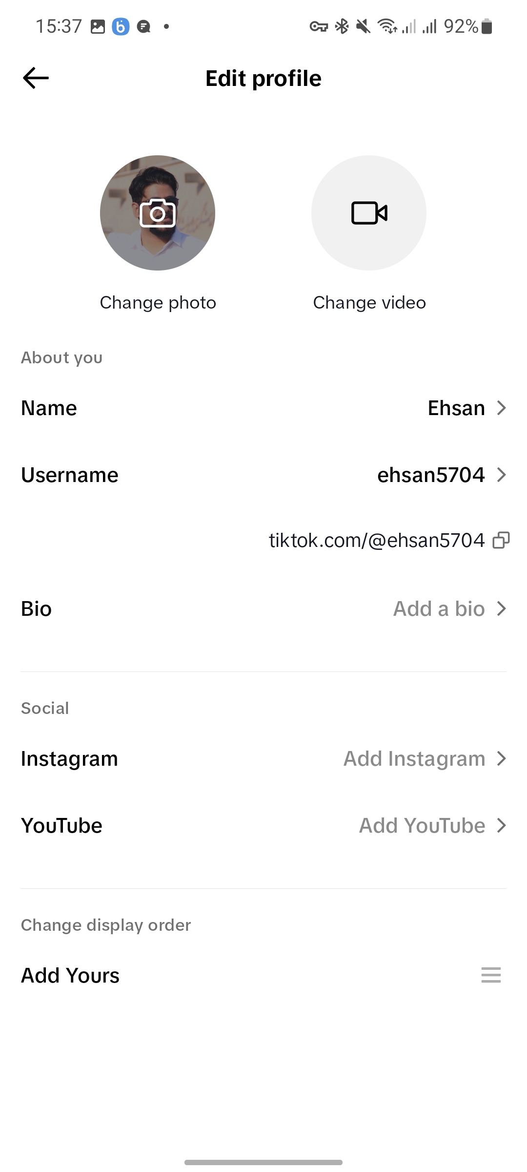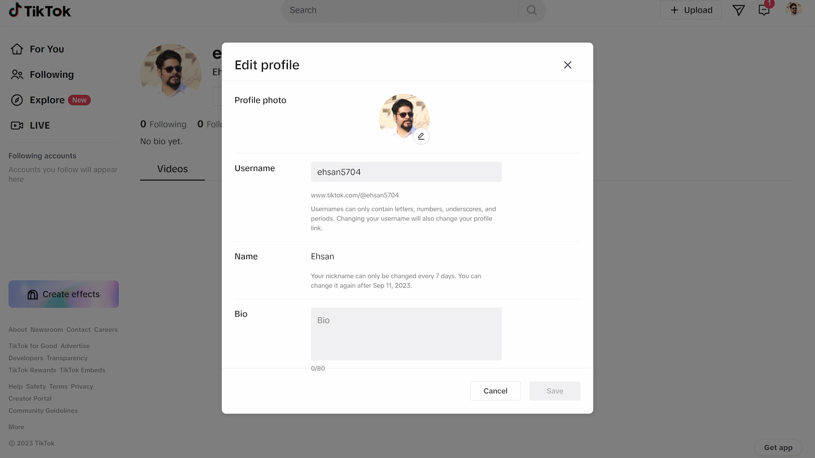حالا که اکانت شما ساخته شد باید کارهایی ابتدایی را انجام دهید تا پروفایل شما کامل شود. در قسمت پروفایل خود به روی گزینه Edit profile کلیک کنید. در این صفحه و از طریق دو گزینه Change Profile و Change Video میتوانید تصویر و ویدئو بهخصوصی برای معرفی اکانت خود آپلود کنید. گزینه Name نام شما است و گزینه Username نام کاربری شما را نمایش میدهد که میتوانید هر دو را تغییر دهید. البته که نام کاربری یکتا است و باید اسمی را انتخاب کنید که تا کنون مورد استفاده قرار نگرفته باشد.