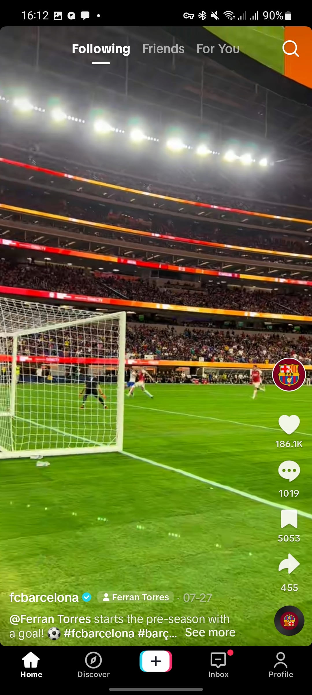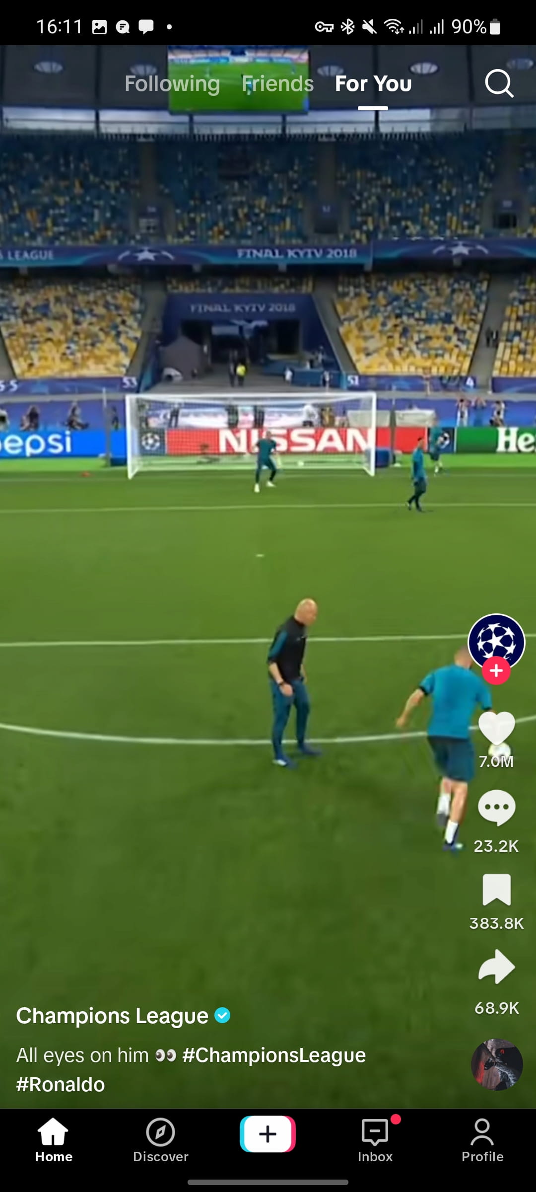 در این صفحه از بالا میتوانید بین سه گزینه For you، Friends و Following جابجا شوید. گزینه For you ویدئوهایی را به شما نشان میدهد که هوش مصنوعی تشخیص داده برای سلیقه شما مناسب خواهد بود. در بخش Friends ویدئو دوستان شما نمایش داده میشود و در بخش Following میتوانید تنها به ویدئوهای افرادی دسترسی داشته باشید که آنها را فالو کردهاید.