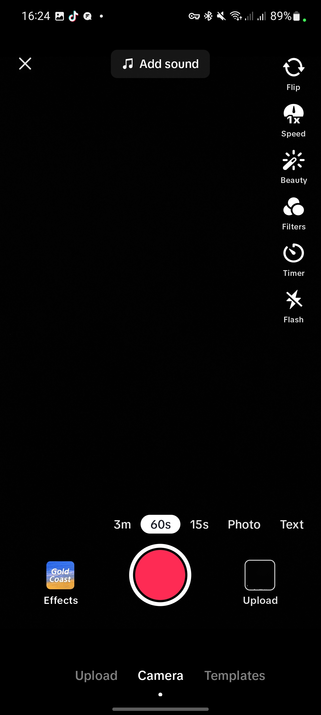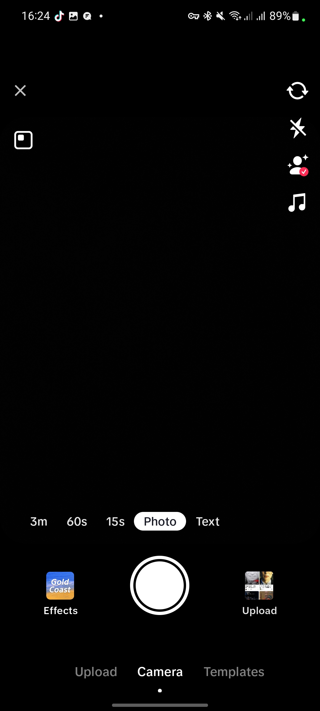 اگر گزینه Templates را از پایین صفحه انتخاب کنید قالبهای مشهور و پیش فرض برنامه برای عکس و فیلم به شما نمایش داده میشود. همچنین میتوانید انتخاب کنید که محتوای مورد نظر شما text است یا photo یا ویدئوهای 15 یا 60 ثانیهای یا حتی 3 دقیقهای. شما از بالای صفحه سمت راست میتوانید از طریق گزینه اول بین دوربین سلفی و دوربین اصلی جابجا شوید و گزینه دوم نیز برای خاموش و روشن کردن فلش است. گزینه سوم برای روشن کردن افکت Beauty (زیبایی) کاربرد دارد و از گزینه آخر برای اضافه کردن موزیک میتوانید کمک بگیرید.