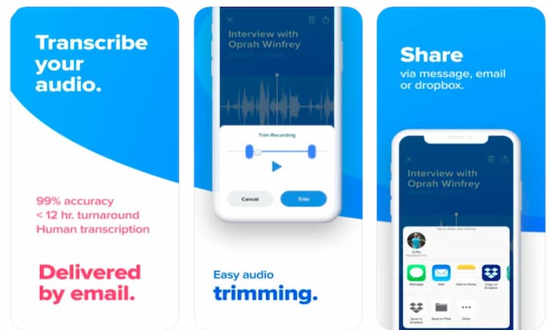 Voice Recorder & Audio Editor در فرم رایگان خود یک ضبط کننده صوتی اولیه با فضای ذخیره سازی به اندازهای است که دستگاه شما اجازه میدهد. میتوانید ضبطها را از طریق ایمیل، متن، فیسبوک، توییتر، یوتیوب، اینستاگرام و اسنپ چت به اشتراک بگذارید. یکی از مواردی که آن را از اکثر برنامههای دیگر در نوع خود متمایز میکند این است که میتوانید ضبط شدههای خود را با رمز عبور، شناسه لمسی یا Face ID ایمن نگه دارید. نسخه پریمیوم رونویسی را با استفاده از فناوری گفتار به متن ارائه میدهد. میتوانید این ویژگی را به صورت رایگان تست کنید. همچنین به شما این امکان را میدهد یادداشتهایی را به ضبط شدهها اضافه کنید و تجربهای بدون آگهی داشته باشید.