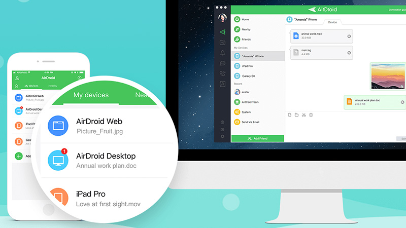 فرستادن فایل از آیفون به اندروید و یلا ویندوز برای بسیاری از افراد سخت است و نمی دانند چگونه با بالاترین سرعت فایل ها را انتقال دهند؛ برنامه Airdroid باعث می شود بتوانید با سرعت 20 مگابایت بر ثانیه فایل ها را بین آیفون و گوشی های اندرویدی و حتی ویندوز جا به جا کنید بدون هزینه اضافی و تبلیغات آزاردهنده درون برنامه ای. یکی از خوبی های این برنامه این است که می توانید بدون اینترنت و با متصل شدن توسط بلوتوث فایل ها را انتقال دهید.