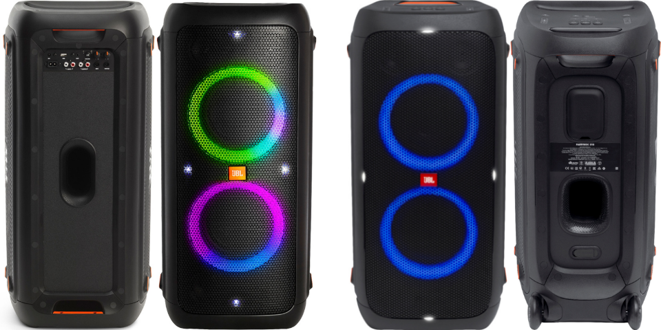 هنگامیکه از روبهرو به این دو اسپیکر نگاه میکنید، ازنظر طراحی کاملاً مشابه به نظر میرسند. اگرچه، وقتی در ظاهر این دو اسپیکر بیشتر دقیق شویم تفاوتهای بسیاری را میتوانیم بین آنها مشاهده کنیم. هر دو این اسپیکرها مجهز به دستگیرههای تلسکوپی برای حمل آسان هستند. اسپیکر پارتی باکس 310 پا را از این فراتر گذاشته و برای حمل آسانتر، دوچرخ را به انتهای بلندگو اضافه نموده است.