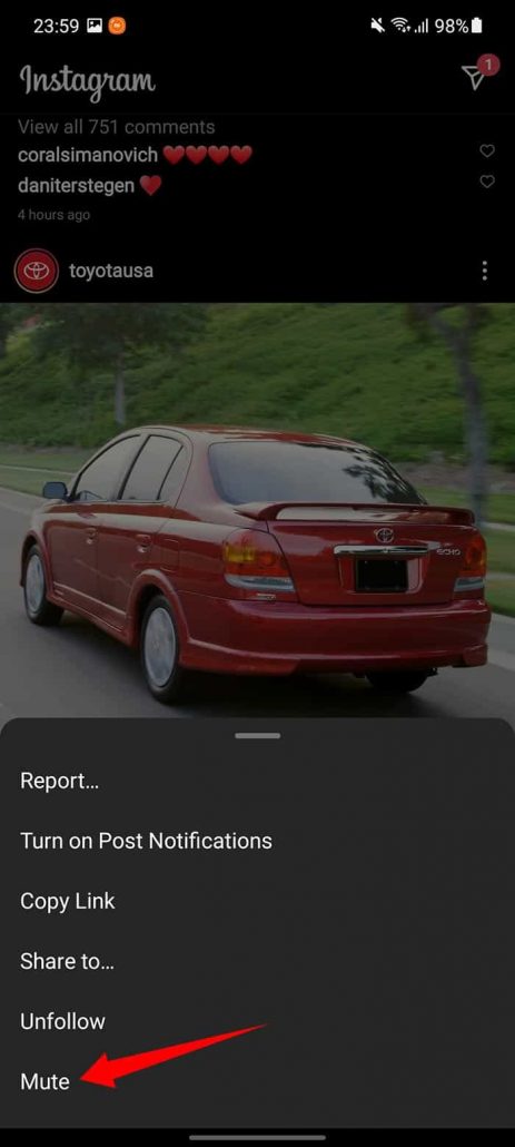 بیصدا کردن پست و استوری (Mute Posts and Story): گاهی پیش میآید که مجبور میشویم برخی از افراد را برخلاف میلمان در اینستاگرام داشته باشیم (دلایلش را خودتان قطعا بهتر میدانید؛ حکایت فامیل است و آشنا است و تعارف و خیلی چیزهای دیگر). حال که این اجبار به وجود آمده شاید دوست نداشته باشیم با وجود اینکه فردی را دنبال کردهایم پست و استوریهای او را مشاهده کنیم و خوشبختانه برای این موضوع راه حلی بسیار ساده وجود دارد. به روی یکی از پستها یا استوریهای فرد مذکور دست خود را نگه دارید تا گزینه Mute ظاهر شود.