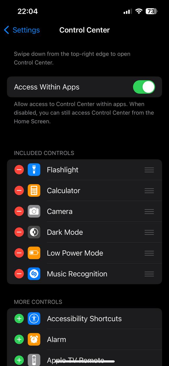 کنترل سنتر بخشی است که دائما با آن سر و کار دارید و باید موارد مختلف را به گونهای در آن انتخاب کنید که به راحتی بتوانید به میانبرهای مختلف دسترسی داشته باشید. کنترل سنتر بخشی است که در ایفونهای دارای ناچ با سوایپ از بالا سمت راست باز میشود و در ایفونهای قدیمیتر با کشیدن دست از پایین به سمت بالا.