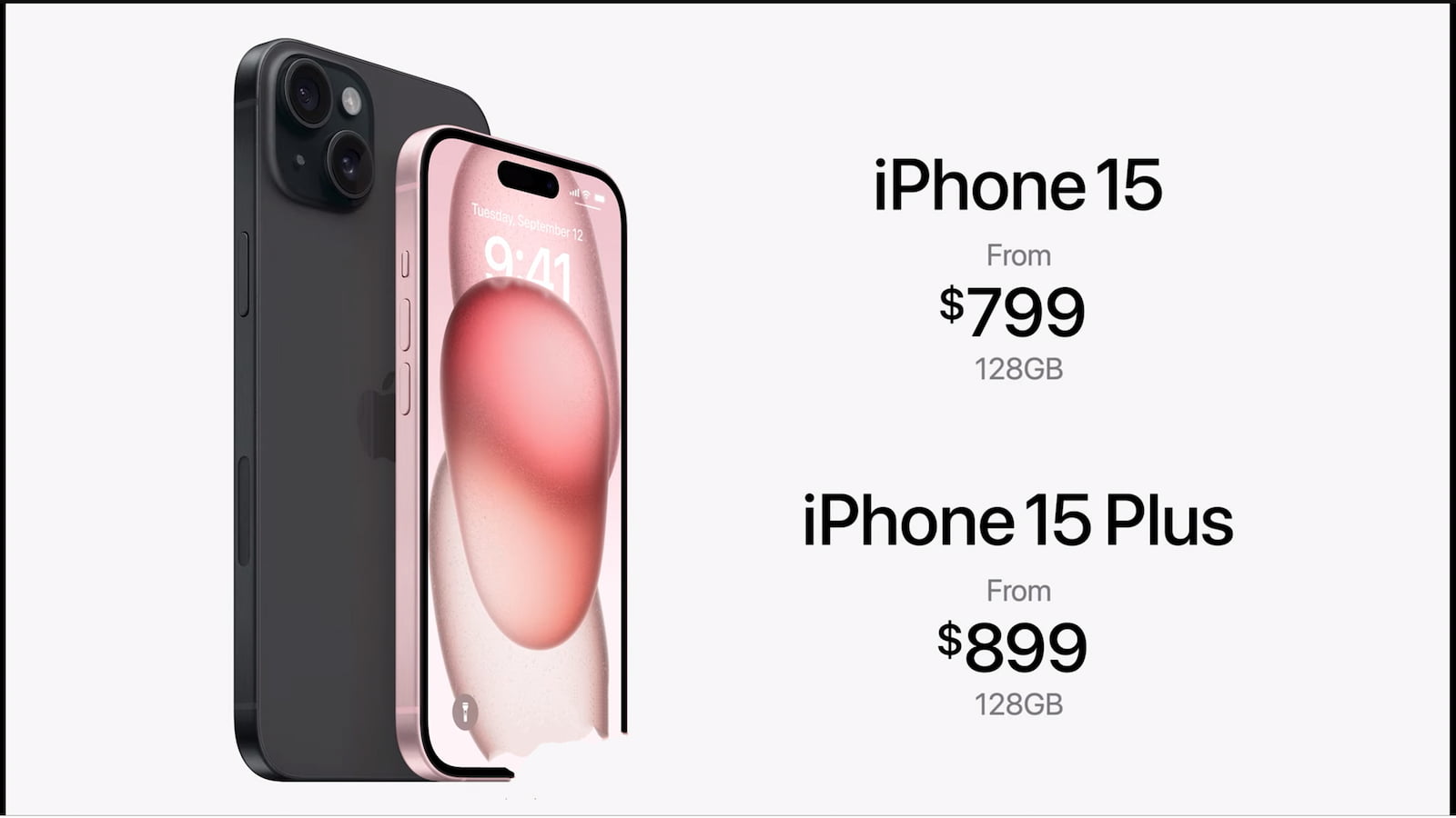 ایفون 15 در نسخه پایهای با 128 گیگابایت حافظه 799 دلار قیمت دارد و این هزینه برای مدل پایهای ایفون 15 پلاس برابر با 899 دلار خواهد بود. ایفون 15 پرو در مدل پایهای با 128 گیگابایت حافظه 999 دلار قیمت خواهد داشت و هزینه ایفون 15 پرو مکس در نسخه پایهای با 256 گیگابایت حافظه برابر با 1199 دلار خواهد بود. این یعنی قیمت ایفونهای جدید دقیقا مانند نسل قبلی است و ایفون 15 پرو مکس نیز در واقع افزایش قیمت نداشته و تنها نسخه 128 گیگابایتی را حذف کرده است.