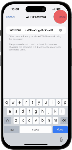 نکته: اگر میخواهید به ipad متصل شوید، در لیست اسامی، نام ipad را جستجو کنید. سپس رمز عبور هاتاسپات شخصی را وارد کنید.
