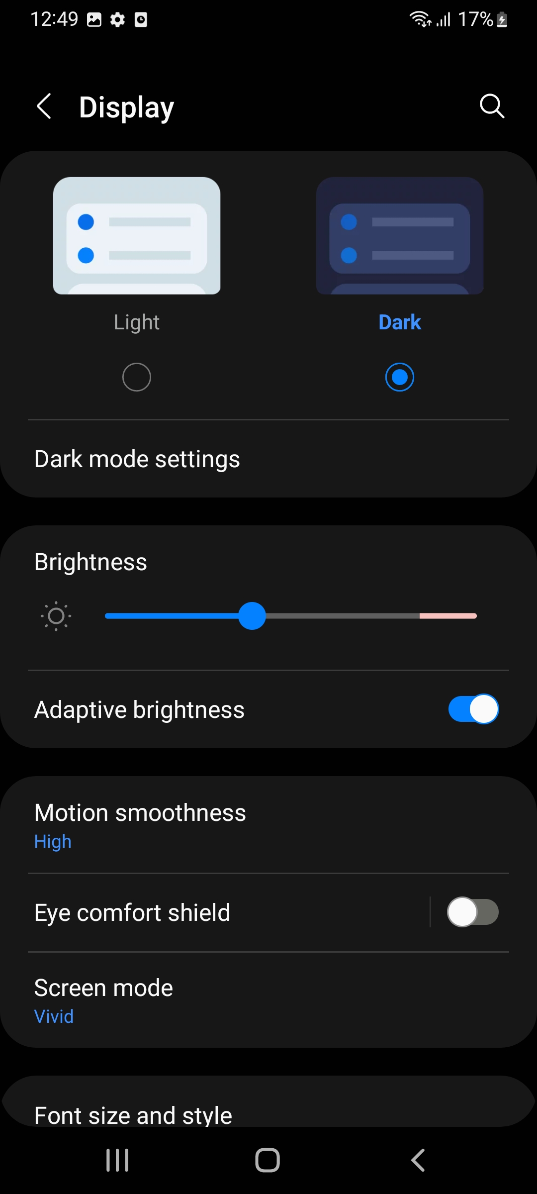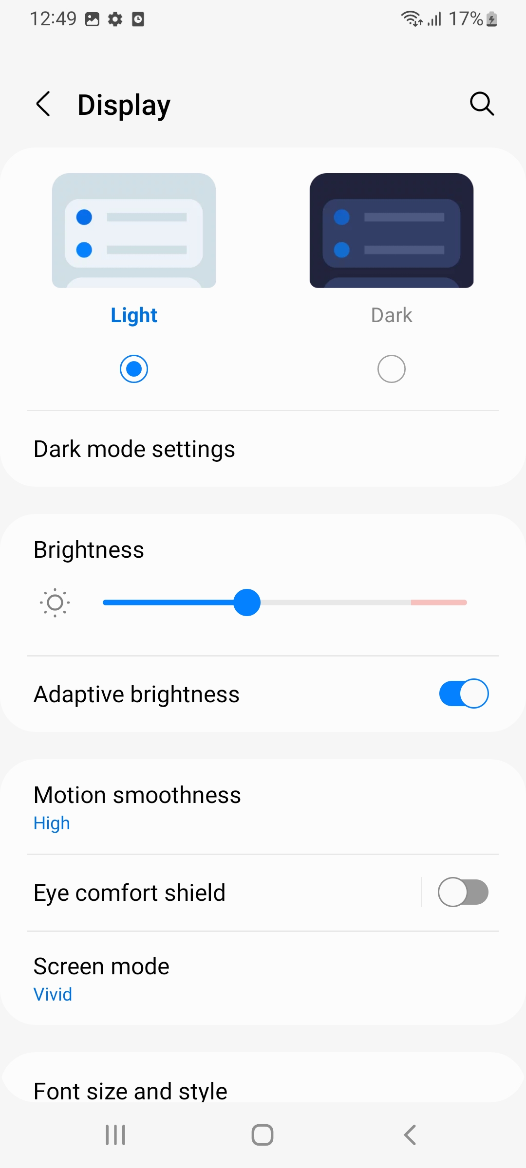 شما در بخش تنظیمات نمایشگر میتوانید بین دو حالت Vivid و Natural یکی را گزینش کنید. حالت Vivid به صورت پیش فرض فعال است و باعث میشود رنگها مقداری غلیظتر به نمایش گذاشته شوند. اگر ترجیح میدهید دقت رنگ پنل افزایش پیدا کند حالت Natural یا همان طبیعی را انتخاب کنید. البته یک حالت سوم هم وجود دارد که به شما امکان میدهد از طریق تغییر رنگهای RGB به رنگبندی مورد نظر خود برسید.