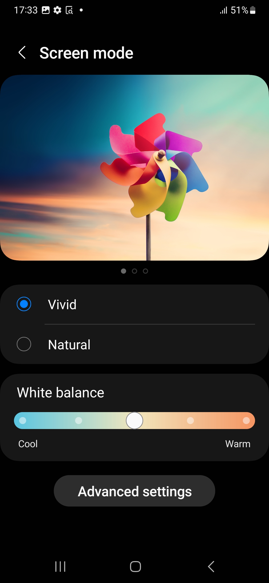 طبق انتظاری که از سامسونگ و پنلهای سوپر امولد آن داریم، کیفیت این نمایشگر بسیار خوب است. این صفحه نمایش در حالت پیش فرض رنگها در حالت Vivid و در گستره رنگی DCI-P3 با دقت بالا نمایش میدهد. در این حالت پیش فرض رنگها زنده و پویا و شاداب هستند و کنتراست هم عالی است. در این حالت مقدار کمی پنل به سمت سردی تمایل دارد که البته میتوانید طبق سلیقه این موضوع را تغییر دهید.