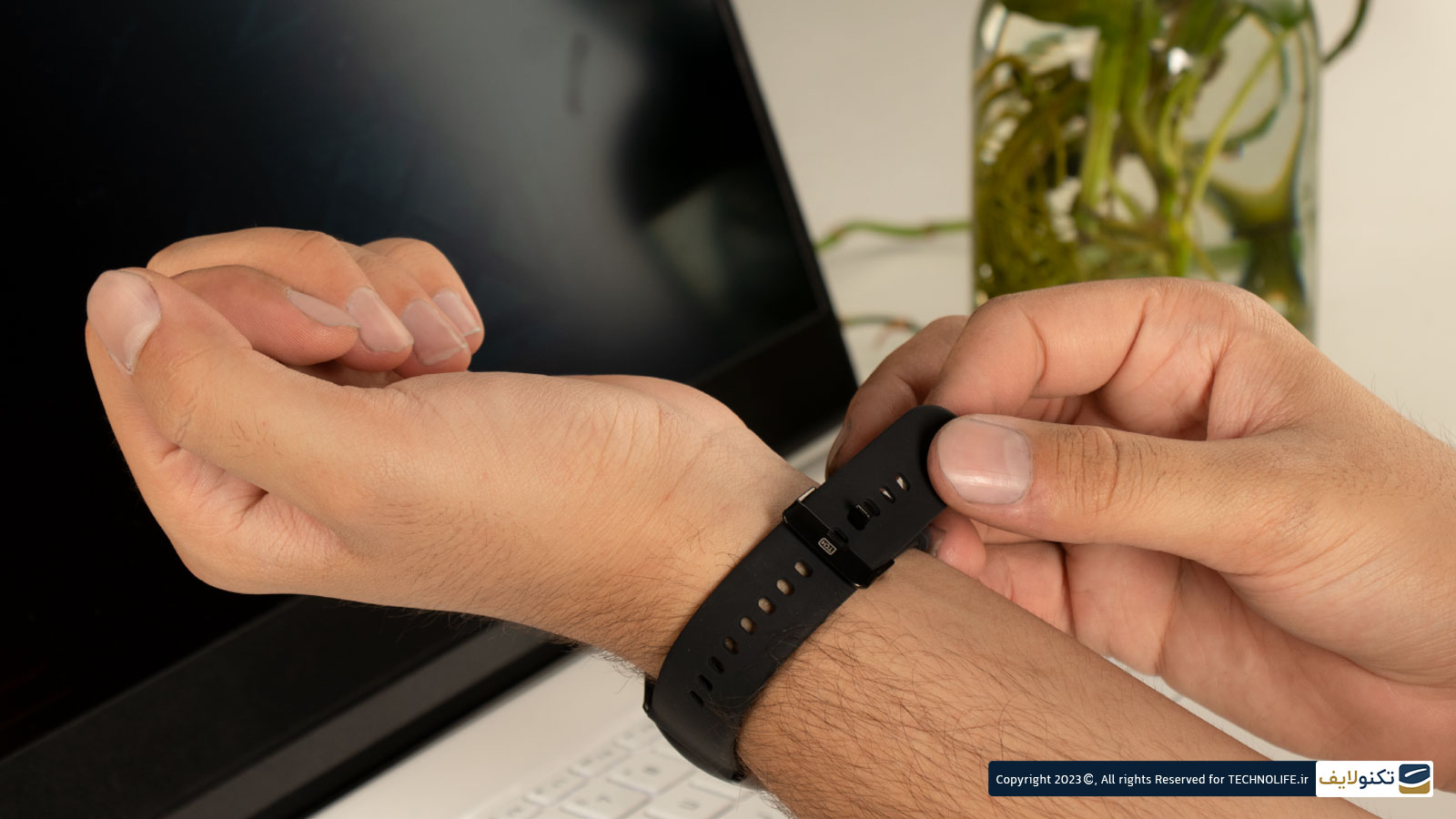 حاشیههای اطراف نمایشگر ساعت TCH Z40 نسبت به میبرو لایت 2 کمتر است و این باعث شده تا پنل بزرگتری در دل این ساعت قرار بگیرد که در مورد این موضوع در بخش بعدی بیشتر صحبت میکنیم. بند ساعت TCH Z40 به صورت پیش فرض سیلیکونی است ولی امکان تعویض آن وجود دارد و شما میتوانید مدلهای دیگری را برای آن خریداری کنید.