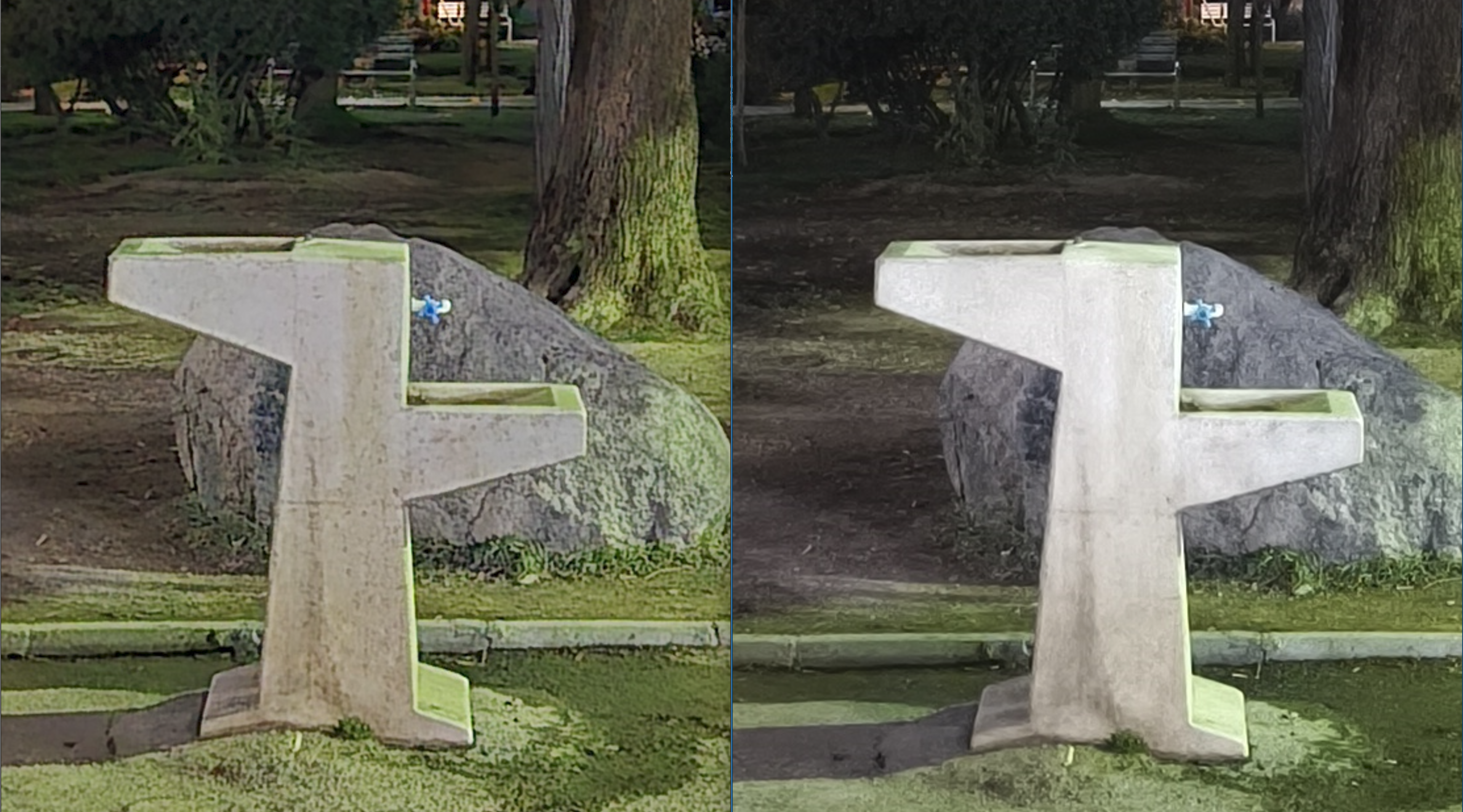 دوربین اصلی در حالت پیش فرض (نمونهها سمت چپ مربوط به s24 fe و سمت راست 14 تی پرو است)