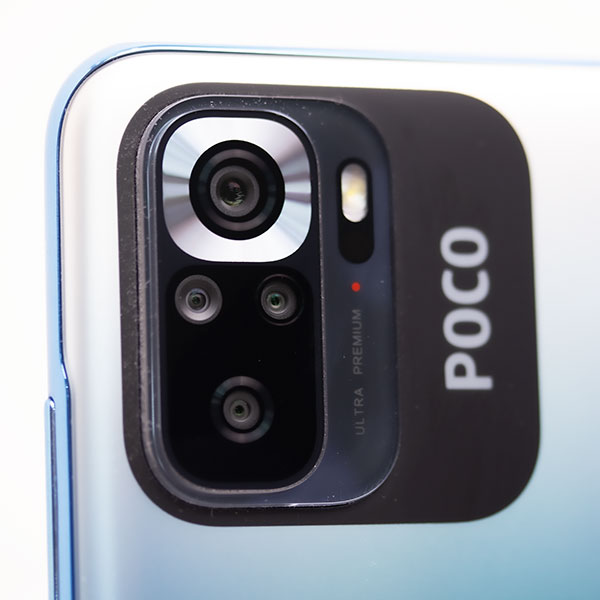 دوربینهای گلکسی M32 به چینش 2 در 2 درون یک فریم مربع شکل قرار گرفتهاند و فلش نیز در زیر این فریم دیده میشود. در سوی دیگر پوکو برای نماینده خود فریم مستطیلی در نظر گرفته و دروبینها را درون این فریم قرار داده است. امتداد این فریم فلش و همچنین لوگوی خود پوکو را دربر میگیرد.