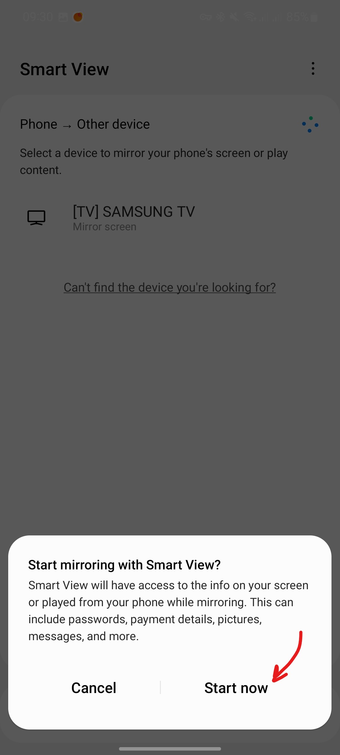 نکته: توجه داشته باشید که برای استریم کردن محتوا از گوشی به تلویزیون، هر دو دستگاه باید از یک شبکه Wi-Fi استفاده کنند.