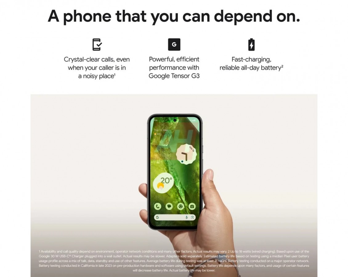 گوگل پیکسل 8a گویا به تراشه Tensor G3 مجهز شده. این گوشی از هوش مصنوعی در بخش دوربین استفاده کرده که نام خلاقانهی AI-mazing را برای آن در نظر گرفته. با این قابلیت، عکسها با بهترین حالت به تصویر کشیده میشوند. از دیگر قابلیتها میتوانیم به فعالسازی حذف نویز در تماسها اشاره کنیم که باعث میشود حتی اگر کاربر در محیطی پرصدا باشد هم تماسهای تمیز و باکیفیتی داشته باشد. شارژ سریع و ماندگاری باتری، درجه مقاومت IP67 و همینطور ۷ سال آپدیت امنیتی برای آن در نظر گرفته شد.
