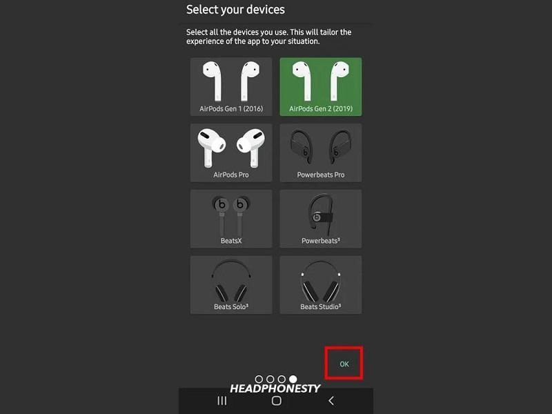 مدل ایرپاد خود را از میان گزینهها انتخاب کنید، سپس روی تایید (Ok) ضربه بزنید.