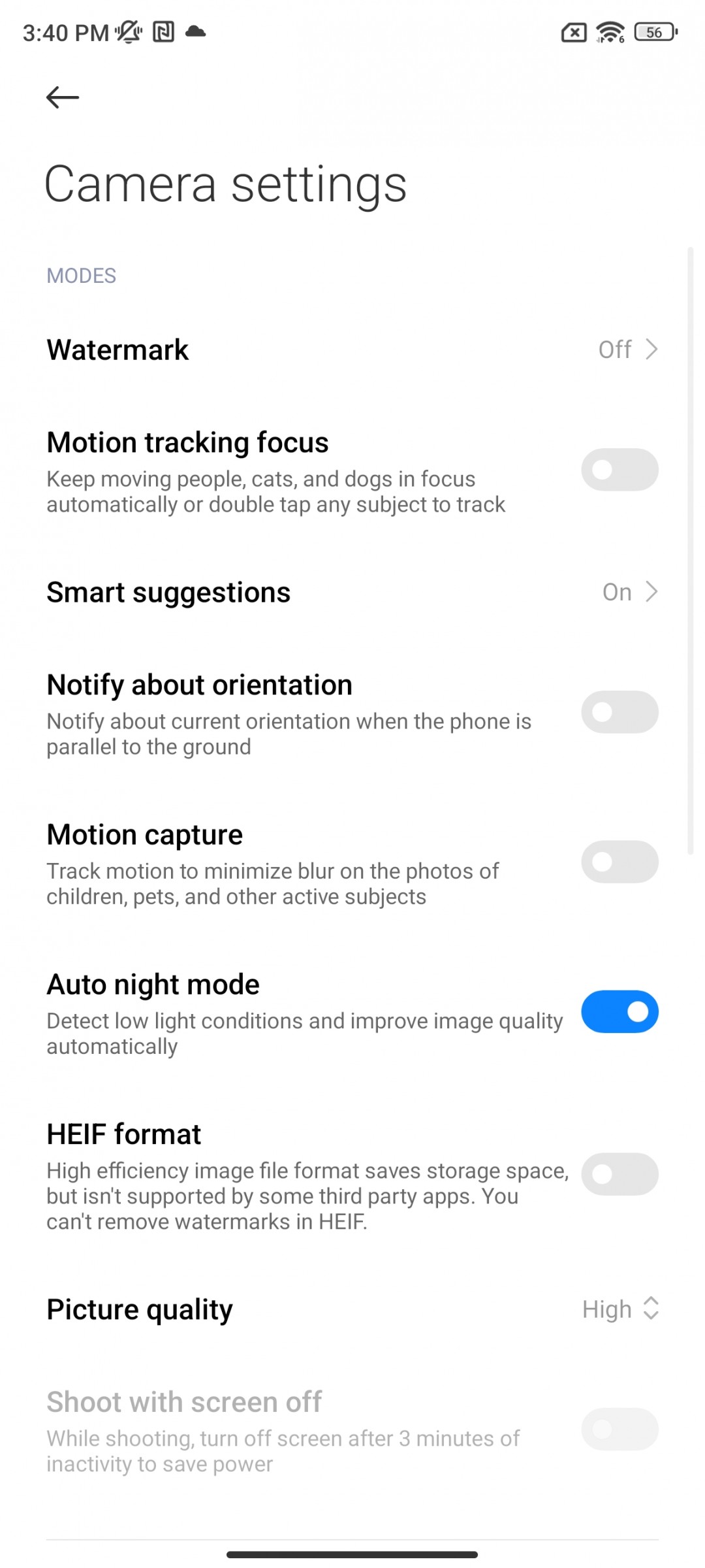 این گوشی جدید شیائومی به Auto Night Mode مجهز شده و در زمانی که نور محیط کم باشد، با حالت Night Mode عکاسی میکند. با این حال این امکان را در اختیار دارید که ویژگی خودکار را غیرفعال کنید و هر زمان که خواستید از حالت عکاسی در شب کمک بگیرید.