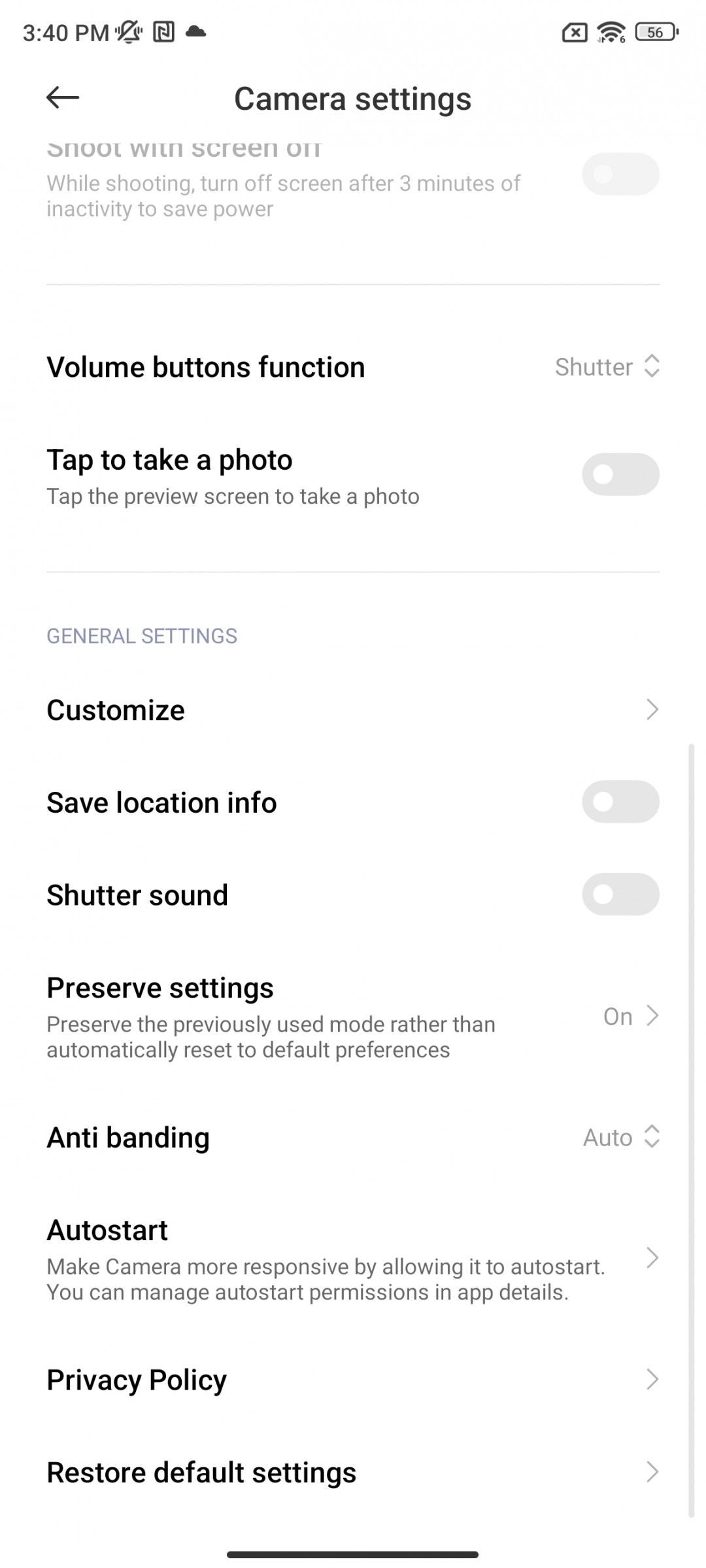 همان اپلیکیشن آشنایی که روی دیگر گوشیهای شیائومی دیده بودیم را روی این گوشی هوشمند مشاهده میکنیم. با حرکت به سمت چپ و راست میتوانید به حالتهای مختلف عکاسی و فیلمبرداری دسترسی داشته باشید. حتی میتوانید حالتهای مختلف را به منوی اصلی اضافه کنید یا حتی را حذف کنید. البته برخی از حالتهای عکاسی مثل همیشه در منوی همبرگری داخل اپلیکیشن دوربین قرار گرفتهاند. از جمله این حالتها میتوانیم به عکاسی ماکرو و برخی تنظیمات اشاره کنیم.