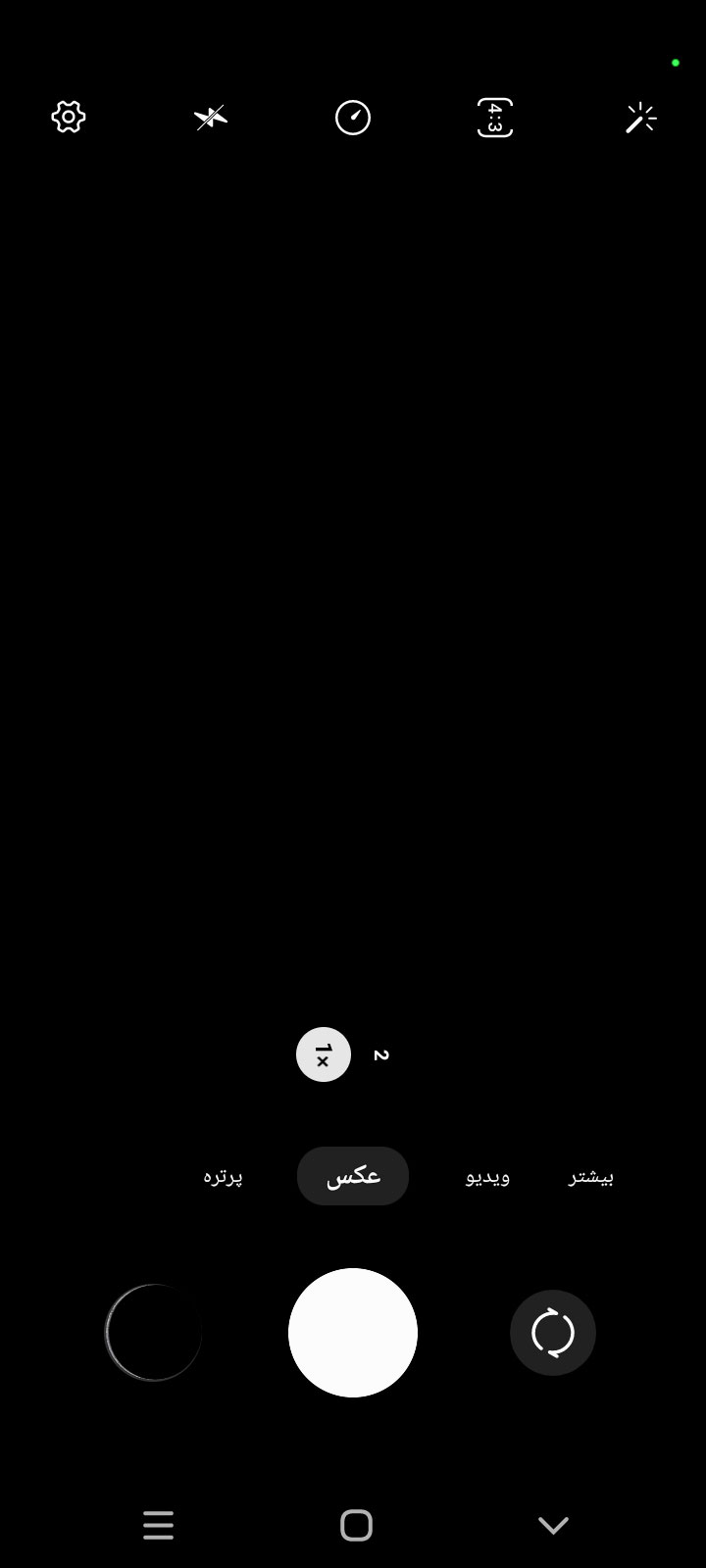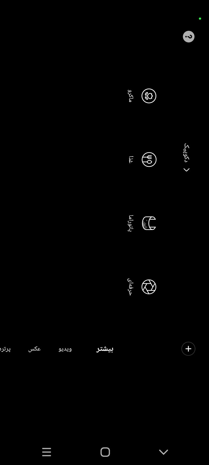 با سوایپ کردن به سمت چپ و راست میتوانید به حالتهای مختلف عکاسی و فیلمبرداری دسترسی داشته باشید. حتی میتوانید حالتهای عکاسی و فیلمبرداری را جابهجا کنید. با سوایپ کردن به سمت بالا و پایین هم میتوانید از دوربین سلفی یا دوربینهای پشت استفاده کنید.