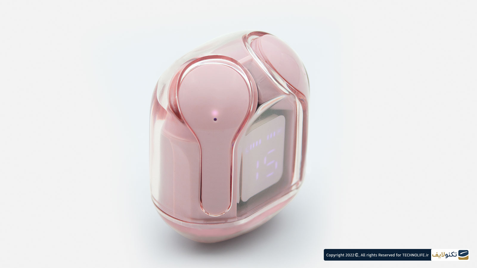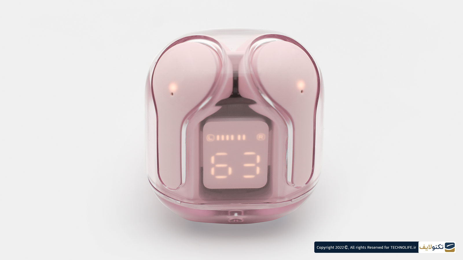 اما موضوع مهم طراحی خود ایرپاد T6 است. کیس نسبتا کوچکی برای این هندزفری بلوتوثی در نظر گرفته شده که قابی شفاف دارد. روی این قاب یک نمایشگر هم دیده میشود که میزان شارژ را به صورت عدد نشان میدهد.