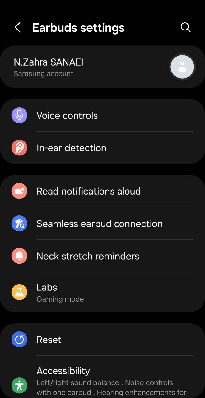 بخش بعدی که در اپلیکیشن به آن دسترسی پیدا میکنید، بخش Earbuds settings است. با وارد شدن به این صفحه میتوانید به دنیای بزرگی از تنظیمات راه پیدا کنید که هر کدام به تنهایی میتوانند قابلیتهای متنوع و بسیار کاربردی را به شما هدیه دهند.