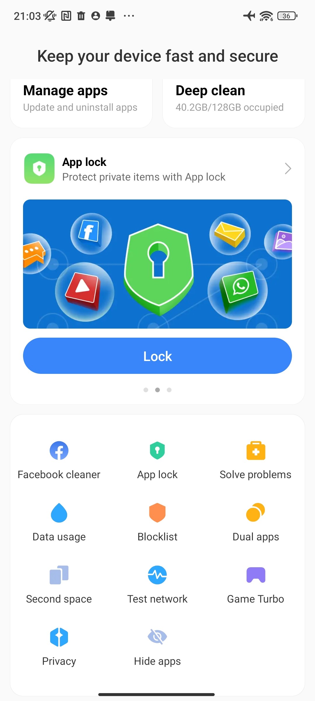 رابط کاربری MIUI از اپلیکیشن Security استفاده میکند. اپلیکیشنی که از گوشی شما در برابر بد افزار ها محافظت میکند. البته که این اپلیکیشن تنظیمات مختلفی دارد که باعث میشود حریم شخصی شما حفظ شود. شما میتوانید با استفاده از این اپلیکیشن لیست سیاه یا Blacklist خودتان را مدیریت کنید. میتوانید عملکرد باتری را زیر نظر داشته باشید و ببینید که چه اپلیکیشنی باتری بیشتر مصرف میکند.