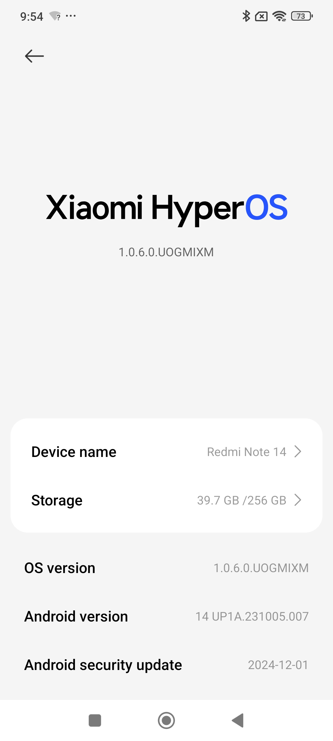 ردمی نوت ۱۴ فورجی از ابتدا با HyperOs بر پایه اندروید ۱۴ روانه بازار شده و سازنده چینی از نسخه جدیدتر HyperOs 2.0 بر پایه اندروید ۱۵ استفاده نکرده است که این نکته میتواند یکی از نقاط ضعف این گوشی اقتصادی جدید به حساب بیاید. شیائومی تعداد سالهای پشتیبانی نرم افزاری خود را به روی این گوشی افزایش داده و حالا تا ۴ سال آپدیت نرم افزاری و تا ۶ سال آپدیت امنیتی ارائه خواهد کرد که نکته جذابی به حساب میآید.