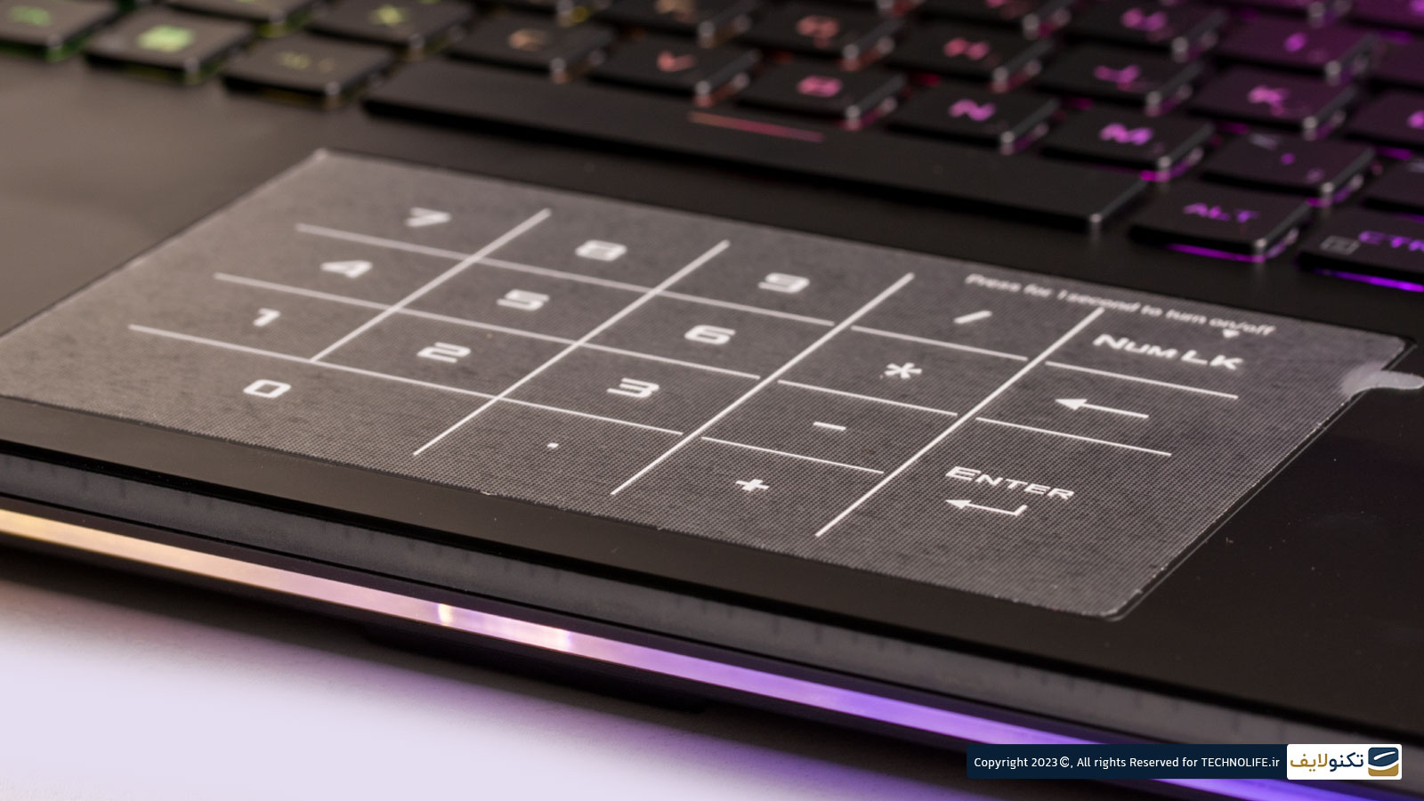 از ویژگیهای جذاب صفحه کلید این لپ تاپ باید به نورهای RGD اشاره کنیم. کیبورد با نور پسزمینه RGB قطعا نظر هر گیمری را به خودش جلب میکند. این امکان را خواهید داشت که نورها را به صورتی که دوست دارید تغییر دهید و یا به حالت رنگین کمانی در بیاورید تا کلی رنگ تولید کنند و ظاهری زیبا را پیش روی شما قرار دهند.