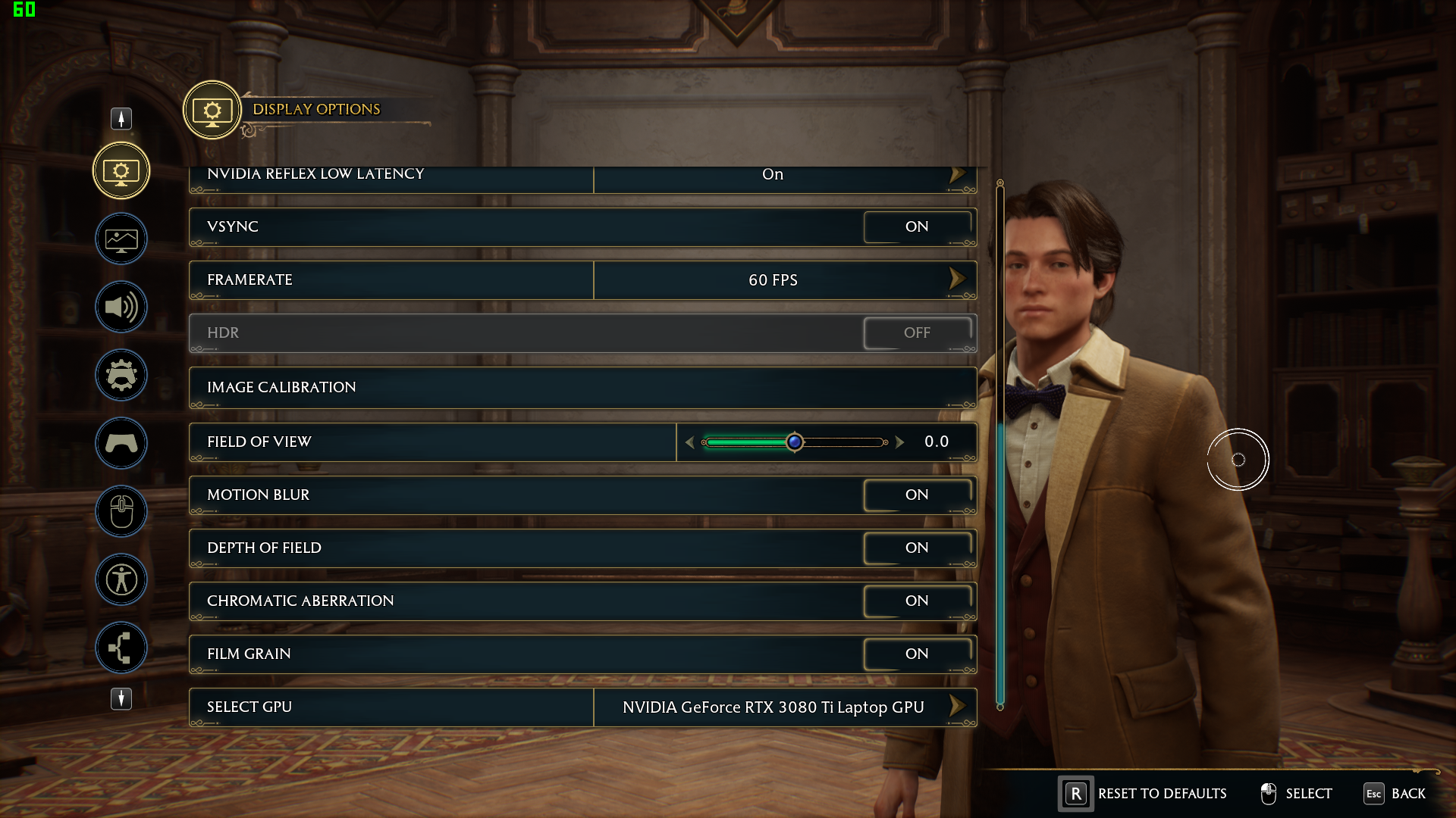 برای اینکه بتوانیم اطلاعات بهتری در نقد و بررسی لپ تاپ ایسوس راگ استریکس اسکار 15 با گرافیک 3080ti به شما ارائه کنیم از بازی Hogwards Legacy هم کمک گرفتیم. البته برای تست این بازی نرخفریم را روی ۶۰ فریم برثانیه قفل کردیم و تنظیمات را هم روی بالاترین حالت قرار دادیم. بازی با پایداری بسیار خوبی روی این لپ تاپ اجرا شد. البته که بعضی وقتها شاهد افت فریم بودیم، اما بازی با کمترین مشکل اجرا شد. در ادامه میتوانید ویدیوی اجرای بازی را ببینید. تصاویری هم از تنظیمات گرافیکی بازی در اختیار شما قرار دادیم.