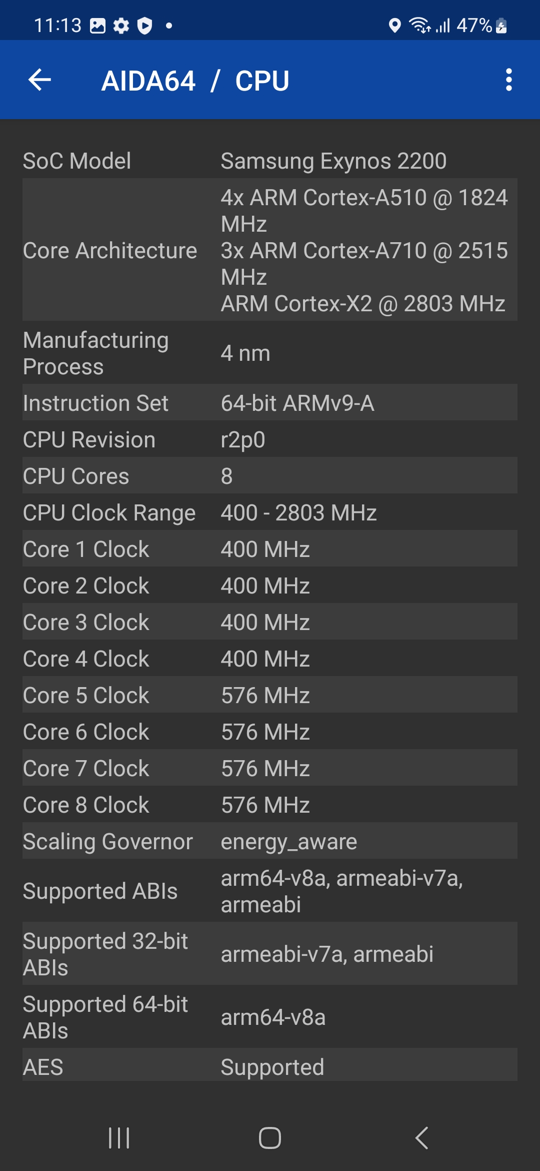این تراشه قبلتر هم به روی سری S22 سامسونگ استفاده شده بود و عملکرد خیلی عالی از نظر پایداری و بهینه بودن نداشت. اگزینوس 2200 دارای 8 هسته پردازنده مرکزی به صورت 1 هسته Cortex-X2 با فرکانس 2.8 گیگاهرتز، 3 هسته Cortex-A710 با فرکانس 2.5 گیگاهرتز و 4 هسته Cortex-A510 با فرکانس 1.8 گیگاهرتز است و پردازنده گرافیکی Xclipse 920 را نیز شامل میشود.
