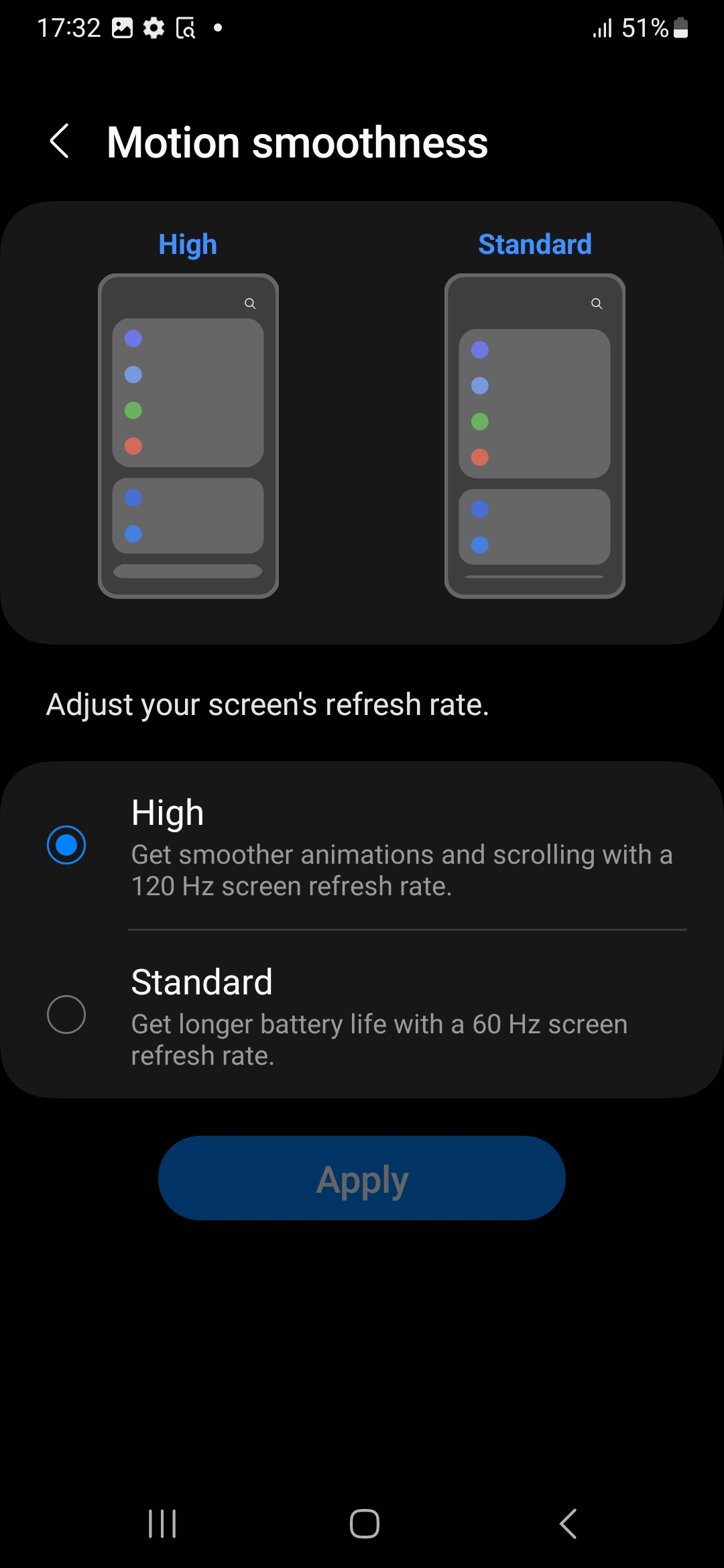 این امکان را خواهید داشت که نرخ نوسازی صفحه نمایش را روی ۶۹ هرتز قرار دهید تا در مصرف باتری سرفهجویی شود. با این حال نزخ نوسازی ۱۲۰ هرتز باعث میشود که بتوانید بازیهای جدید را روانتر و با نرخ فریم بالاتری تجربه کنید.
