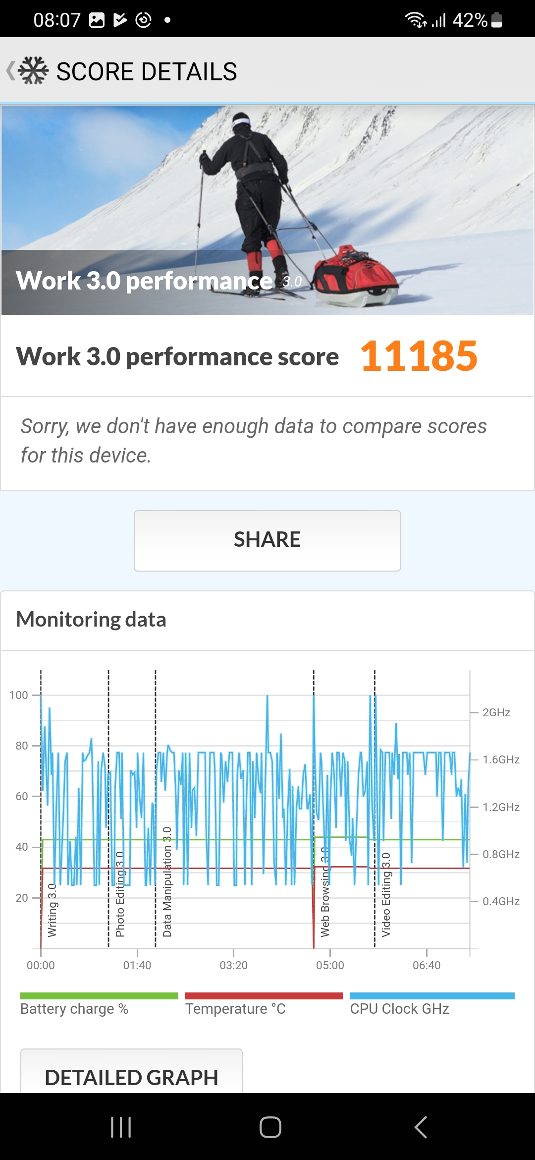 مدلی که برای بررسی در اختیار داشتیم از ۸ گیگابایت رم و ۱۲۸ گیگابایت حافظه داخلی هم استفاده میکرد. همانطور که گفتیم گوشی در استفادههای معمولی واقعا عملکرد خوبی دارد.