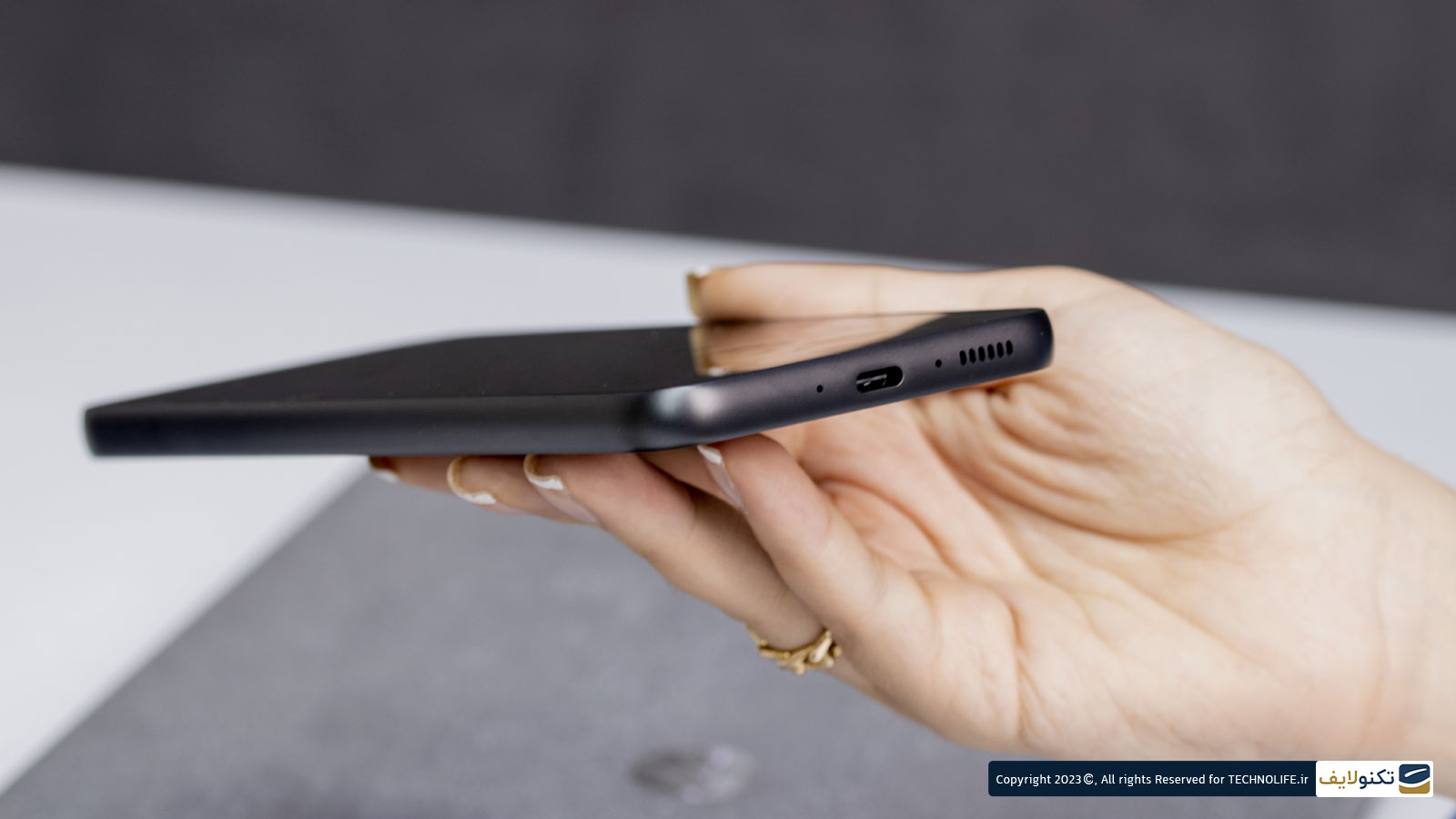 روی لبه سمت راست این گوشی دکمه پاور و دکمهها تنظیم صدا قرار گرفتهاند. روی لبه سمت چپ هم هیچ چیزی دیده نمیشود. روی لبه بالای گوشی میکروفن و محل قرار گرفتن سیمکارت و کارت حافظه قرار گرفته است. روی لبه پایین هم اسپیکر، میکروفن و پورت USB-C دیده میشود.