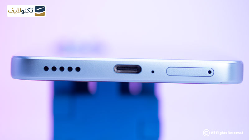 روی لبه بالای شیائومی ۱۲ لایت فرستنده IR را در کنار اسپیکر بالایی مشاهده میکنید. روی لبه پایین گوشی هم پورت USB-C و بلندگوی دیگر و میکروفن اصلی و محل قرار گرفتن سیمکارت را مشاهده میکنید.