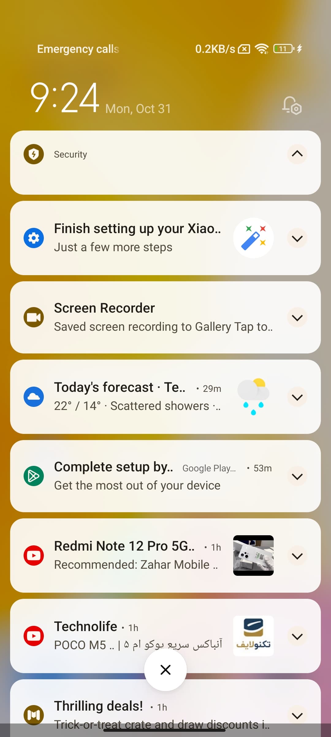 در حالت کلی باید بگوییم که رابط کاربری MIUI 13 قرار گرفته روی این گوشی در مقایسه با دیگر گوشیهای شیائومی تفاوتی ندارد. با توجه به صفحهنمایش با کیفیت و تراکم پیکسلی بالایی که صفحهنمایش دارد، مشاهده میکنید که نوشتهها و المانهای رابط کاربری درخشانی و کیفیت بالایی دارند. مانند دیگر گوشیهای شیائومی که از رابط کاربری MIUI 13 استفاده میکنند مشاهده میکنید که دو منوی Control Center و اعلانها روی گوشی قرار گرفته است. دقیقا شبیه به iOS که روی گوشیهای آیفون دیدهایم.