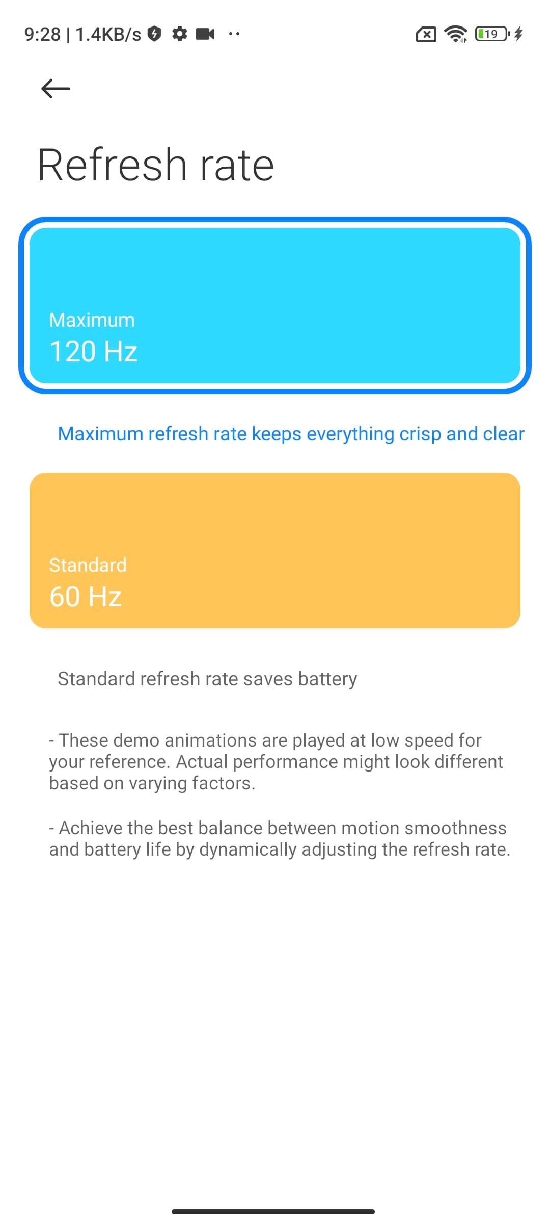 برای استفاده بهتر از صفحهنمایش میتوانید نرخ نوسازی را تغییر دهید. در بهترین حالت نرخ نوسازی به ۱۲۰ هرتز میرسد و همه چیز نرم و روان اجرا میشود. البته برخی از اپلیکیشنها در حالت ۱۲۰ هرتز هم همچنان را نرخ ۶۰ هرتز کار میکنند.