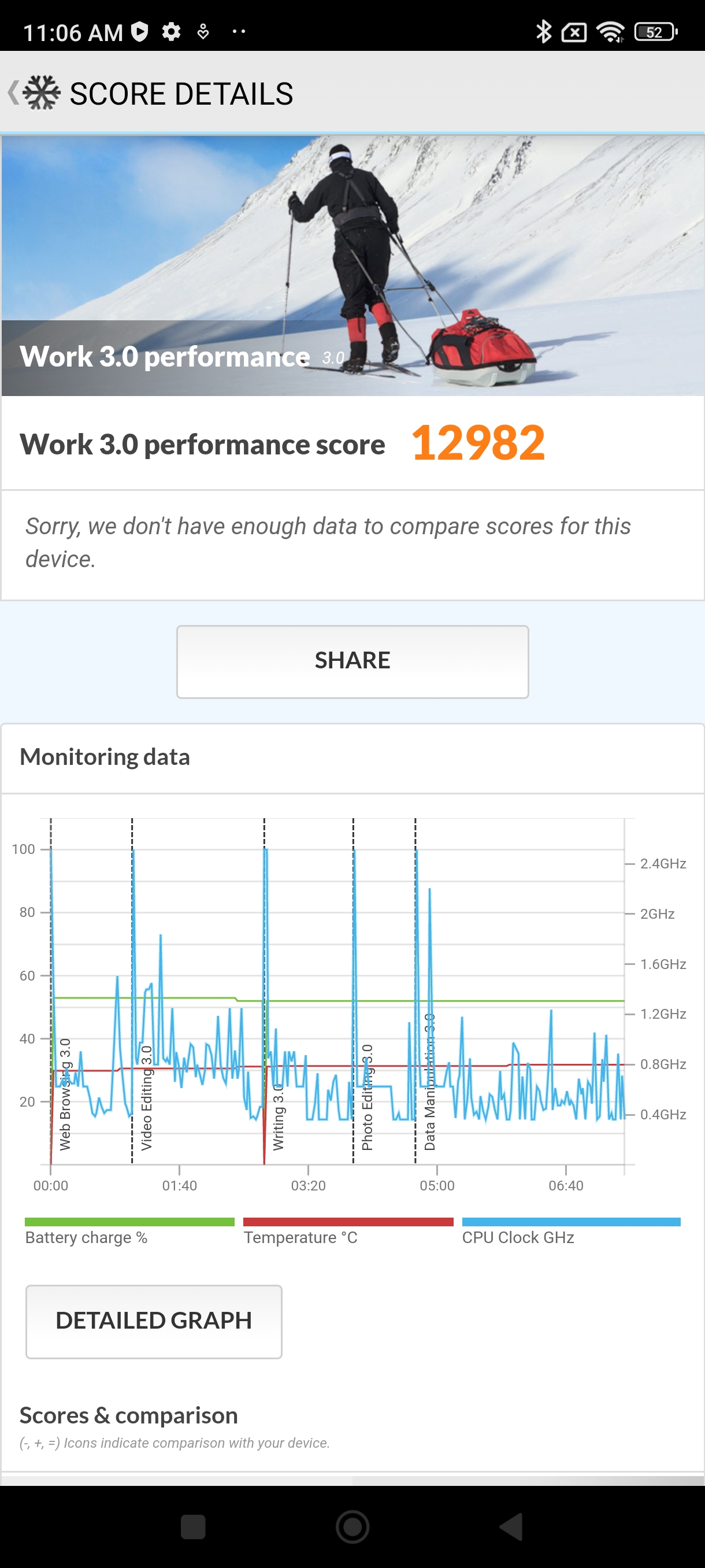 گوشی که در اختیار ما قرار دارد حافظه 256 گیگابایت همراه با رم 12 گیگابایت است. شیائومی این گوشی را تنها با حافظه 256 گیگابایت تولید کرده و دو رم 8 و 12 گیگابایت را برای انتخاب قرار داده است؛ همچنین این برند از امکان استفاده از کارت حافظه جانبی نیز صرف نظر کرده است. در کل طی مدت زمانی که از این محصول استفاده کردیم و در بین برنامهها و تنظیمات آن گشتیم عملکرد روان و مناسبی را ارائه میکند و از سرعت خوبی نیز برخوردار است. برای اینکه بهتر متوجه قدرت تراشه این گوشی شوید تست بنچمارکهای آن را در ادامه قرار دادهایم.