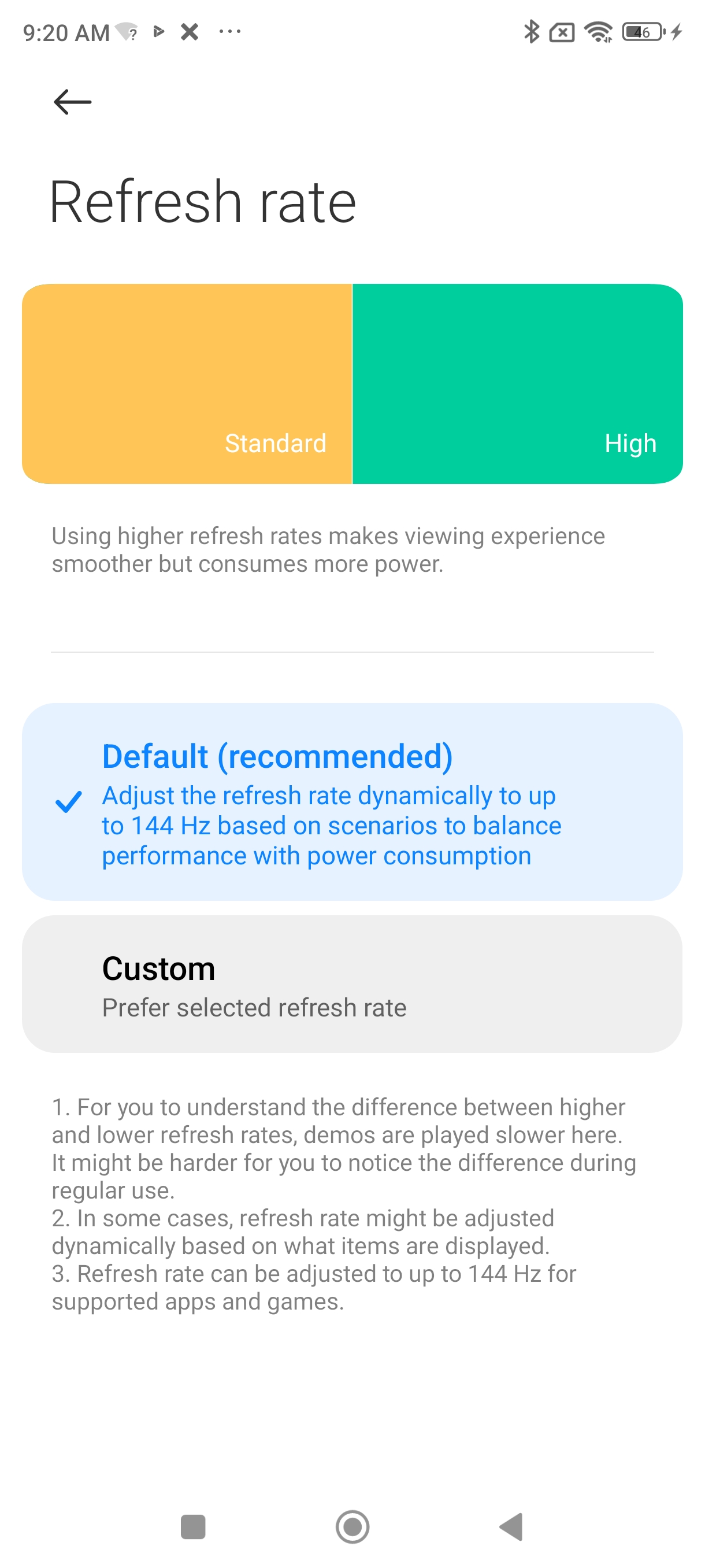در بخش Refresh Rate تنظیماتی برای نرخ تازهسازی قرار دارد. دو حالت Default و Custom از گزینههایی هستند که برای تنظیم نرخ تازهسازی صفحهنمایش در نظر گرفته شدهاند. گزینه Default نرخ تازه سازی را با توجه به برنامه و کاری که با گوشی انجام میدهید تنظیم میکند و با زدن روی Costum میتوانید نرخ تازهسازی را روی 60 هرتز یا 120 هرتز تنظیم کنید. در صورتی که قصد انجام امور روزانه با گوشی را دارید بهتر است آن را روی 60 هرتز قرار دهید تا در مصرف باتری نیز صرفه جویی داشته باشید. برای محافظت از صفحهنمایش در برابر ضربه و خط و خش صفحه آن گوریلا گلس 5 دارد؛ همچنین قابلیت صفحهنمایش همیشه روشن نیز برای آن در نظر گرفته شده که در صورت نیاز میتوانید آن را فعال کنید. در مجموع صفحهنمایش 13تی از کیفیت بالایی برخودار شده که این ویژگیها و کیفیت را در مدلهای قاتل پرچمدار کمتر میتوان یافت.