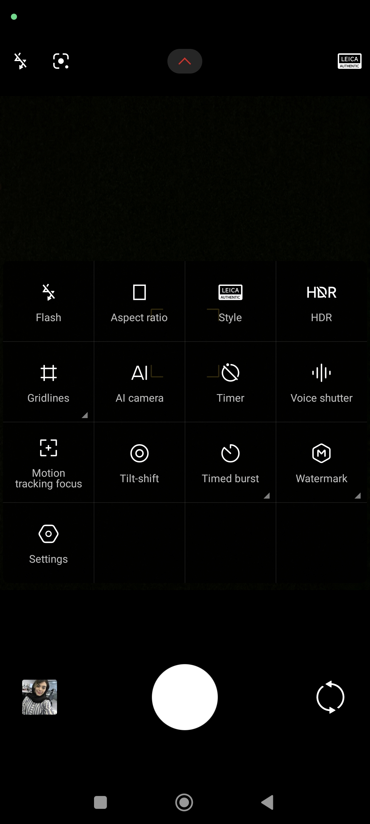 هنگامی که برنامه دوربین را باز میکنید در پایین صفحه منوی عکسبرداری، فیلمبرداری، پرتره، عکاسی در شب و عکسبرداری از اسناد و مدارک را دارد که با زدن دست روی هر گزینه آن را فعال کنید. در این بخش گزینه More نیز قرار دارد که با زدن روی آن گزینههای Slow Motion، پانوراما، تایم لپس و Short Film در دسترس قرار میگیرد. در بالای صفحه نیز گزینههای HDR، استایل، Aspect Ratio، فلش، Voice Shutter، تایمر، Al Camera و سایر تنظیمات قرار دارد.