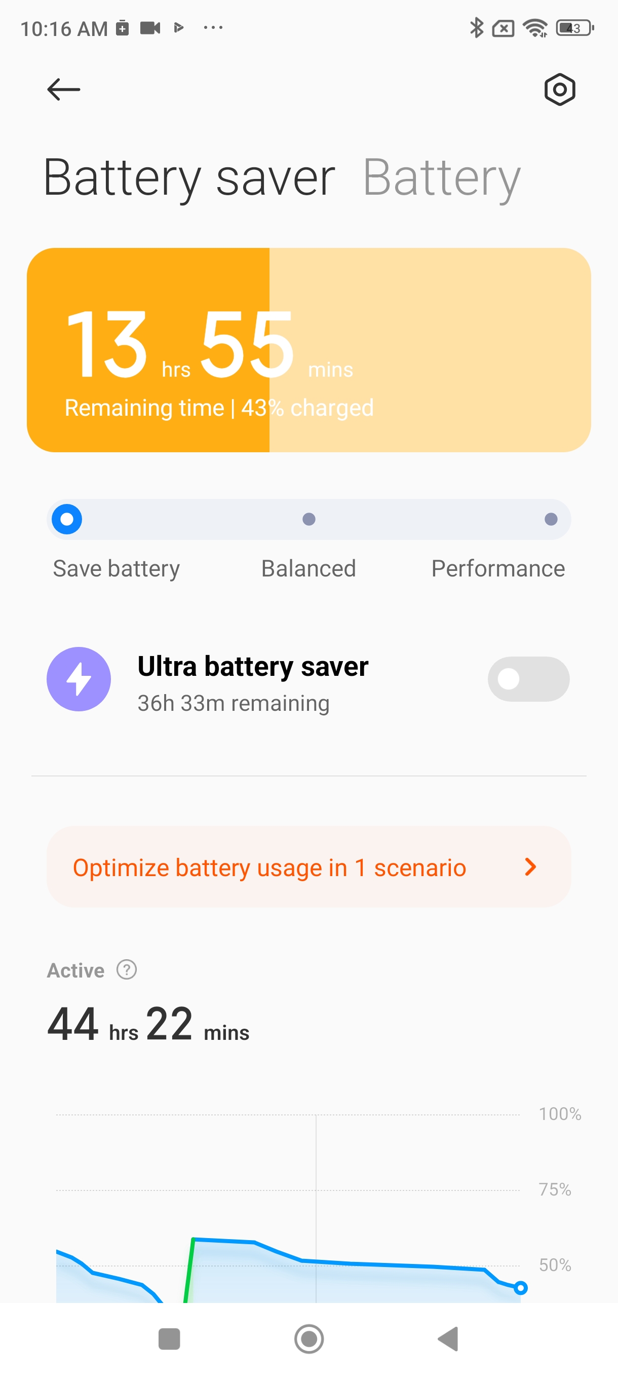 داخل بخش تنظیمات در قسمت باتری سه مدل حالت مختلف برای تنظیم کارکرد باتری گوشی در نظر گرفته شده است. حالت Save Battery مصرف باتری را کم میکند و میزان نگهداری شارژ گوشی را افزایش میدهد. حالت Balanced ویژگیهای معمولی و کاربردی گوشی را فعال میکند و مصرف باتری مناسبتری در اختیارتان قرار میدهد. در آخر حالت Performance از تمامی قابلیتها و ویژگیهای گوشی با بالاترین کیفیت استفاده میکند و کمی در مصرف زیاد باتری تاثیر گذار است. شیائومی 13 تی از قابلیتهای PowerDelivery 3 و QuickCharge 4 نیز پشتیبانی میکند.
