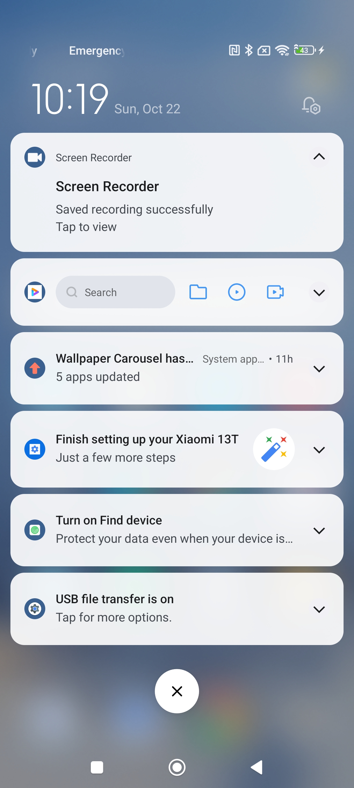 هنگامی که دستتان را از قسمت سمت چپ به وسط صفحه میکشید کنترل سنتر شیائومی که شباهت بسیار زیادی به کنترل سنتر اپل دارد باز میشود. در این کنترل سنتر تنظیمات وای فای، میزان روشنایی صفحهنمایش، تنظیمات بلندی صدا، بلوتوث، حالت پرواز، چراغ قوه، قفل کردن سریع صفحهنمایش، بیصدا کردن گوشی، روشن کردن اینترنت همراه، تنظیمات حالت ذخیره انرژی باتری، هات اسپات، لوکیشن و قابلیتهای کاربردی دیگری قرار دارد. در صورتی که دستتان را از وسط صفحه به پایین بکشید نیز میتوانید اعلانها را تماشا کنید و دسترسی سریع به فایلها، دانلودها و سرچ بار داشته باشید.
