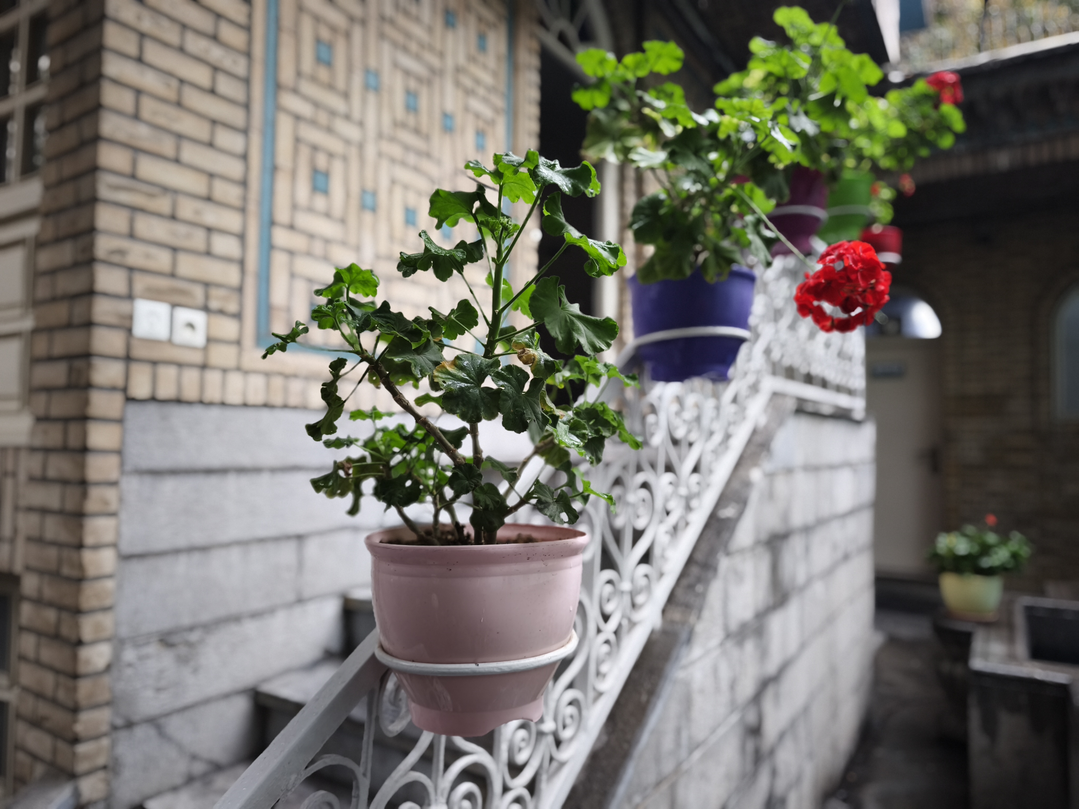 توضیح عکس گلدان در نور طبیعی روز: در عکس بالا دوربین تشخیص داده که باید گلدان صورتی را از فضای اطراف و گلدانهای پشت سر جدا کند و این کار را به خوبی انجام داده است.